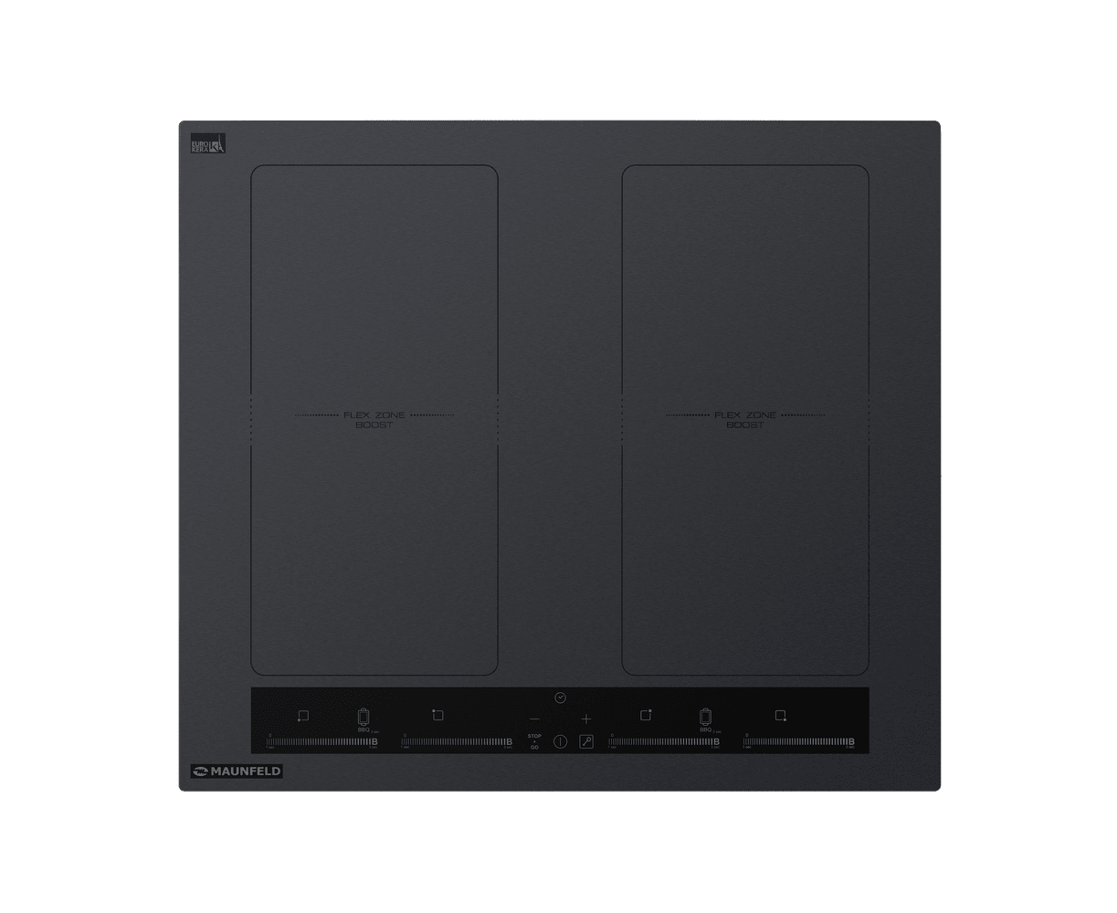 Индукционная варочная панель серого цвета выполнена из жаропрочного стекла французского производителя EuroKera. Стеклокерамика не только отличается высокими техническими показателями, но и легко очищается.Диаметр каждой из 4-х конфорок составляет 180 мм. Две конфорки мощностью 2000 Вт (бустер 2600 Вт) и две - по 1500 Вт (бустер 2000 Вт). Вы можете объединить две варочные зоны в «FLEX ZONE» с мощностью 2500 Вт (бустер 2800 Вт).Сенсорное управление дает возможность: регулировать уровень мощности для каждой конфорки (9 уровней) с помощью слайдеравыставить таймер (для отключения одной или нескольких варочных зон по истечении заданного времени)активировать функцию «FLEX ZONE» +BBQиспользовать функцию «STOP+GO» («Пауза»)заблокировать панель от детей Эксплуатацию варочной поверхности значительно упрощает: Индикатор остаточного тепла - укажет, какая из варочных зон ещё горячая.Детектор диаметра посуды - экономит электроэнергию, нагревая только необходимую полезную поверхность конфорки.Автоматическое отключение в случае перегрева, долгого простоя работающей конфорки и при намокании поверхности варочной панели. Для приготовления на индукционной варочной панели пригодна посуда из ферромагнитного материала с ровными краями и плоским дном.