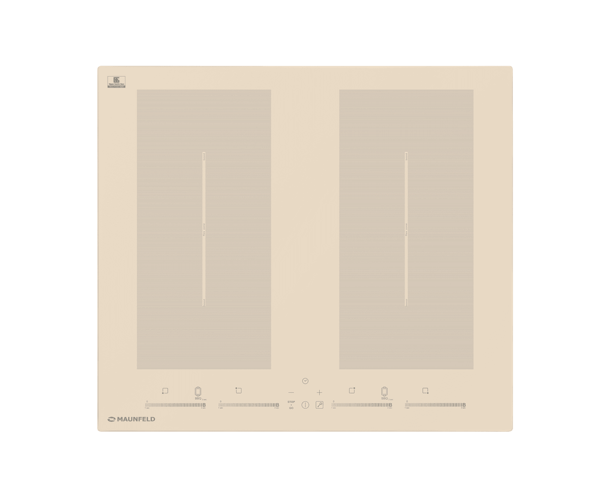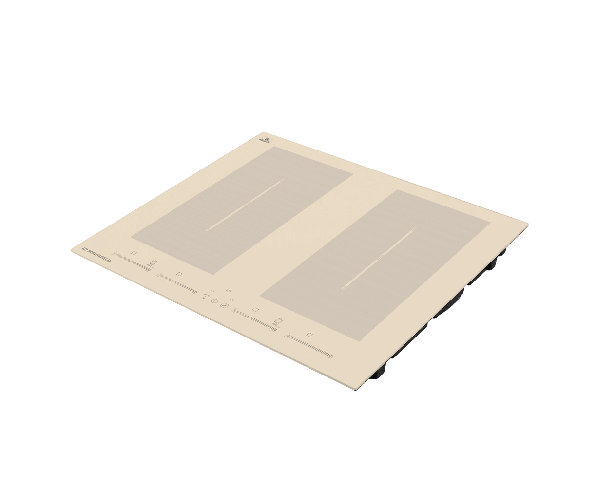 Индукционная варочная панель бежевого цвета выполнена из жаропрочного стекла японского производителя Nippon Electric Glass. Стеклокерамика не только отличается высокими техническими показателями, но и легко очищается.Диаметр каждой из 4-х конфорок составляет 180 мм. Две конфорки мощностью 2000 Вт (бустер 2600 Вт) и две - по 1500 Вт (бустер 2000 Вт). Вы можете объединить две варочные зоны в «FLEX ZONE» с мощностью 2500 Вт (бустер 2800 Вт).Сенсорное управление дает возможность: регулировать уровень мощности для каждой конфорки (9 уровней) с помощью слайдеравыставить таймер (для отключения одной или нескольких варочных зон по истечении заданного времени)активировать функцию «FLEX ZONE» +BBQиспользовать функцию «STOP+GO» («Пауза»)заблокировать панель от детей Эксплуатацию варочной поверхности значительно упрощает: Индикатор остаточного тепла - укажет, какая из варочных зон ещё горячая.Детектор диаметра посуды - экономит электроэнергию, нагревая только необходимую полезную поверхность конфорки.Автоматическое отключение в случае перегрева, долгого простоя работающей конфорки и при намокании поверхности варочной панели. Для приготовления на индукционной варочной панели пригодна посуда из ферромагнитного материала с ровными краями и плоским дном.
