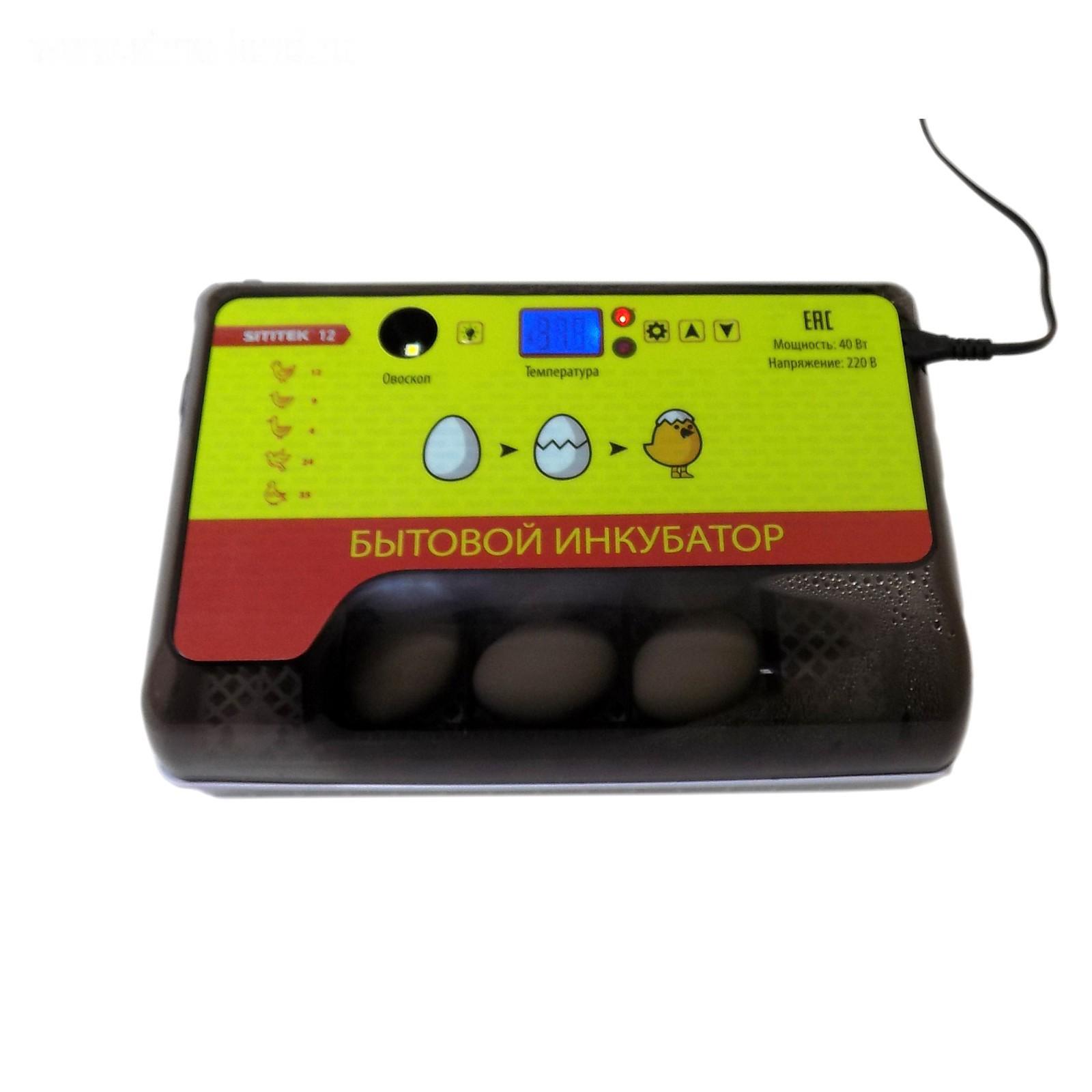 Инкубатор автоматический с универсальными лотками, вместимость до 12 яиц, встроенный овоскоп