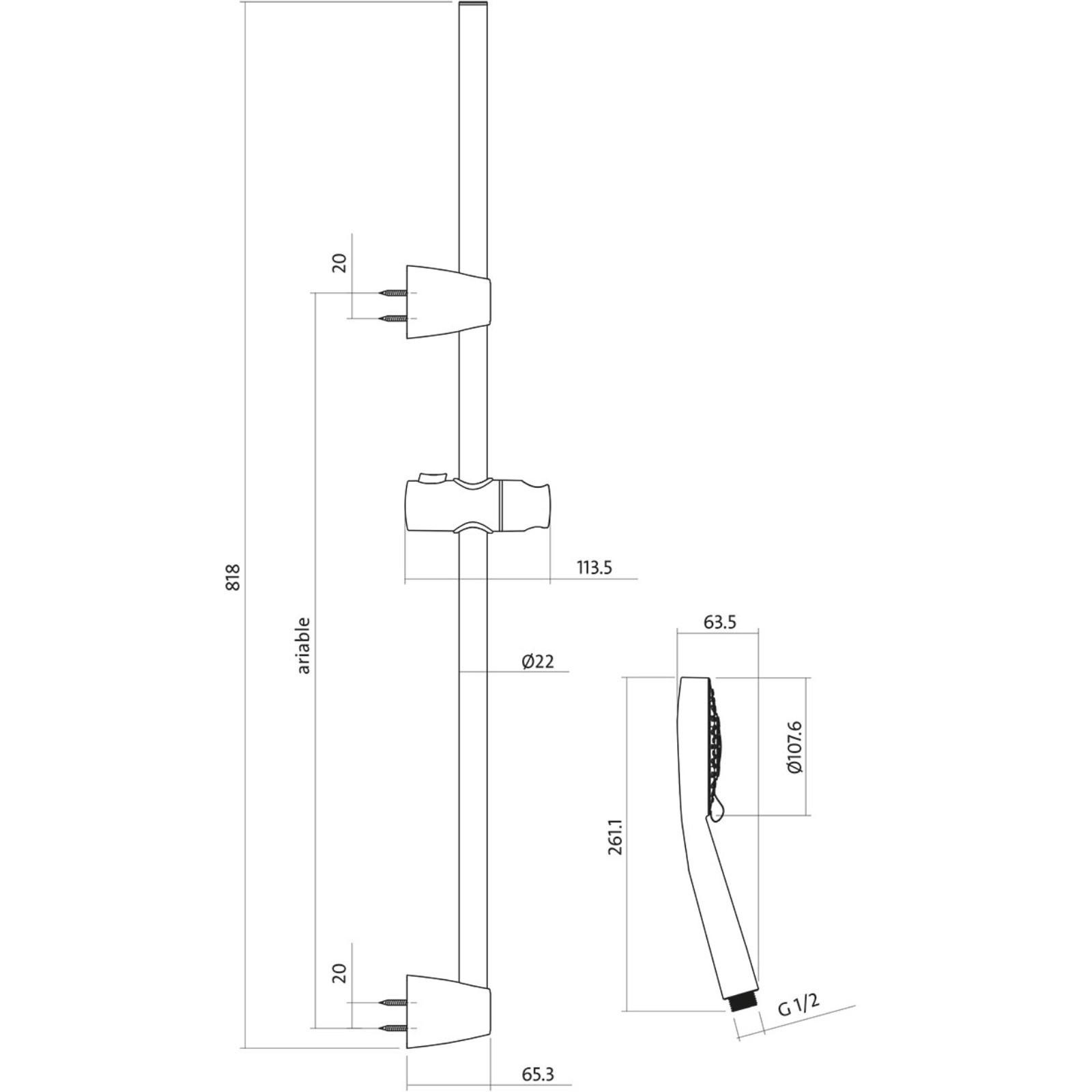 Душевой гарнитур Cersanit NENO A63068 стойка, лейка 5 режимов, шланг 200 мм