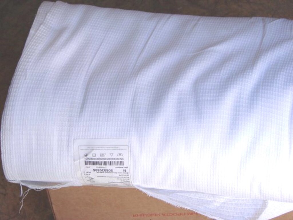 Ткань полотенечная вафельная отбеленная ширина 45 см рулон 60 пог. м. плотность 200 г/м2