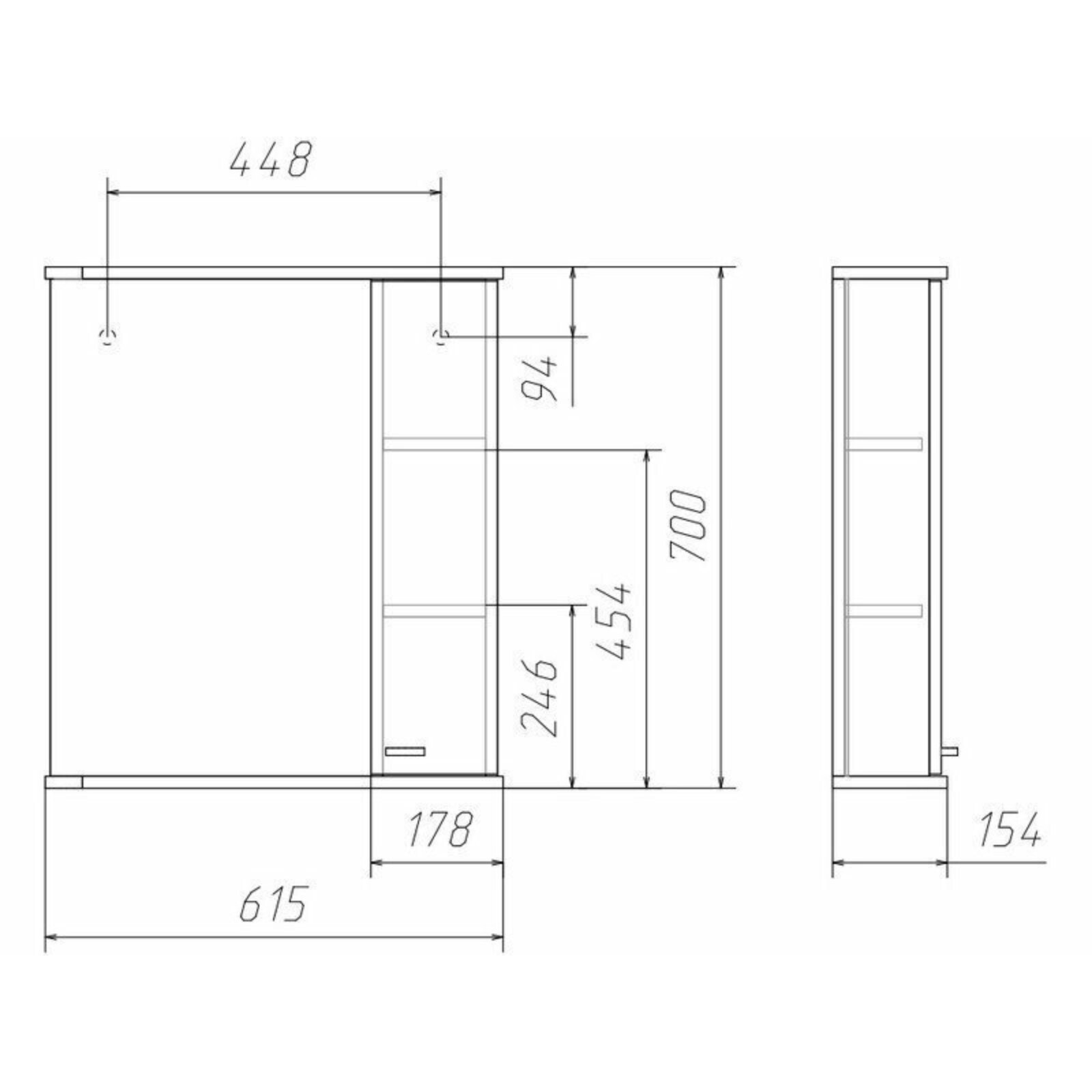 Шкаф-зеркало "Радуга 60", яблоко, левый/правый