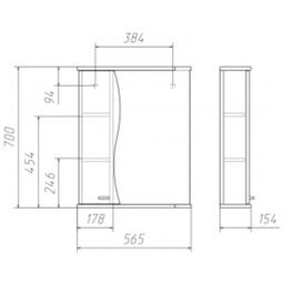 Шкаф-зеркало Волна 55 левый АЙСБЕРГ 15,7 см х 55 см х 70 см