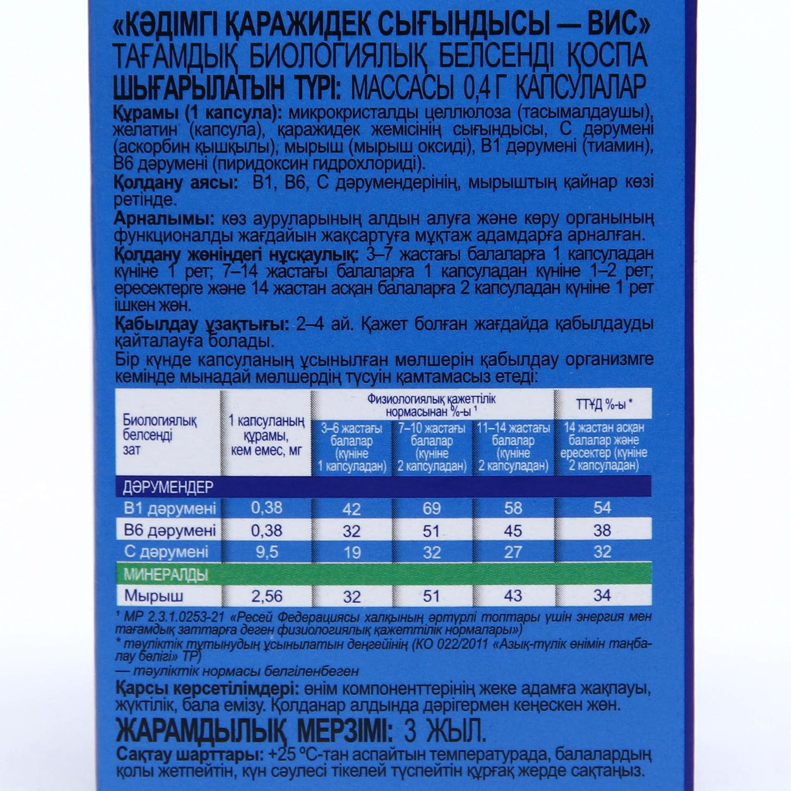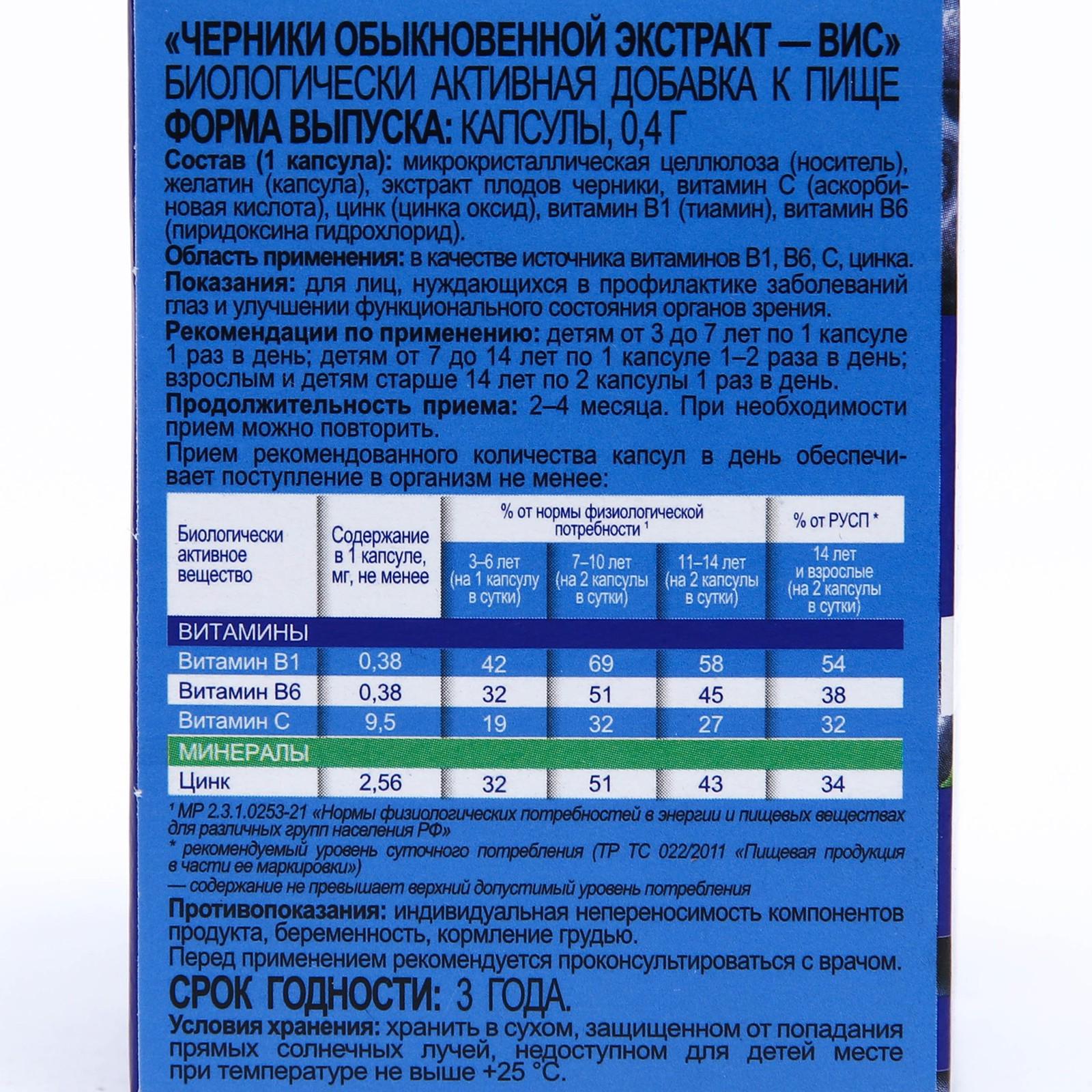Показания: для лиц, нуждающихся в профилактике заболеваний глаз и улучшении функционального состояния органов зрения. Рекомендуется в качестве источника витаминов В1, В6, С, цинка.
