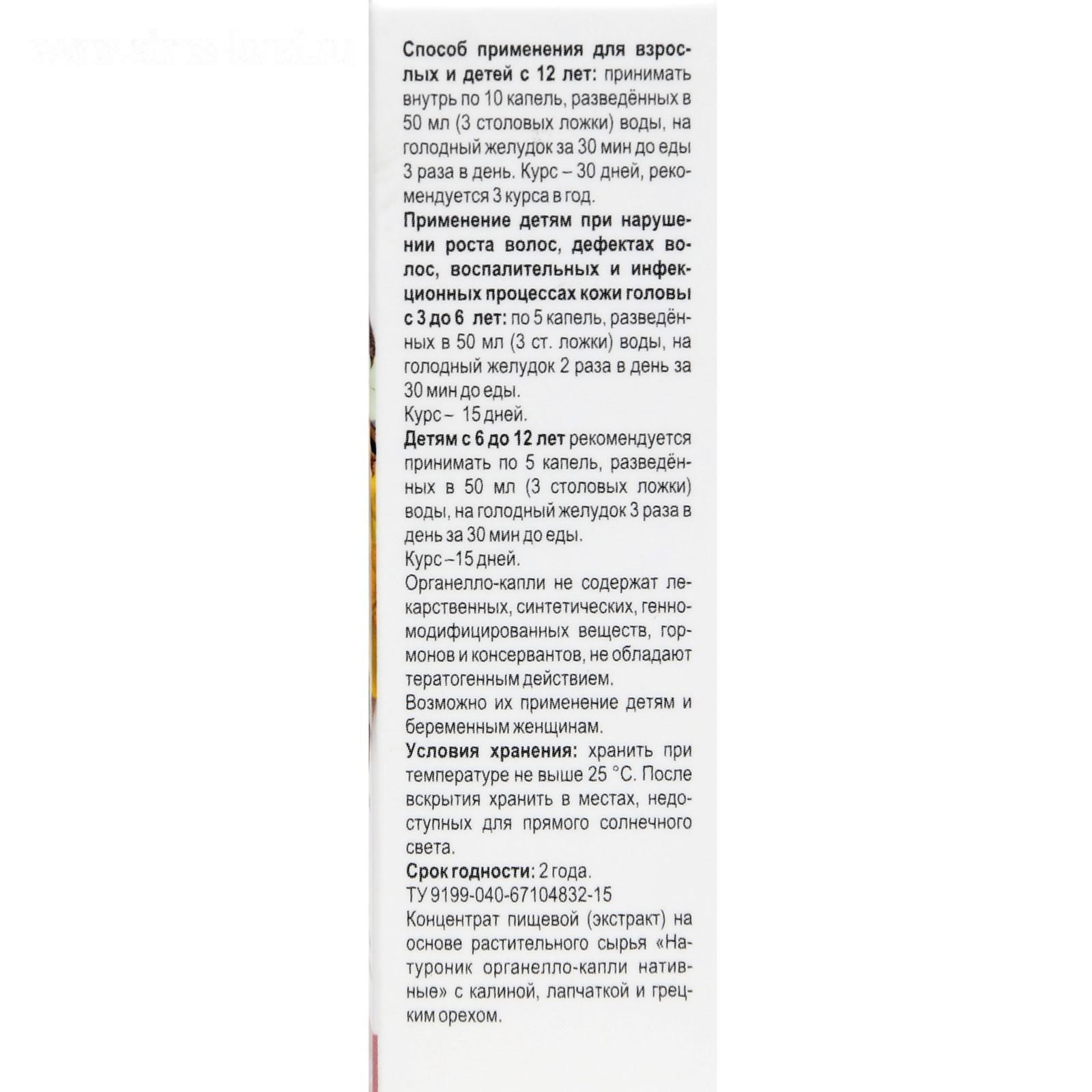 Органелло-капли «Натуроник. Мастер волос» с калиной, лапчаткой и грецким орехом, от выпадения волос, 10 мл