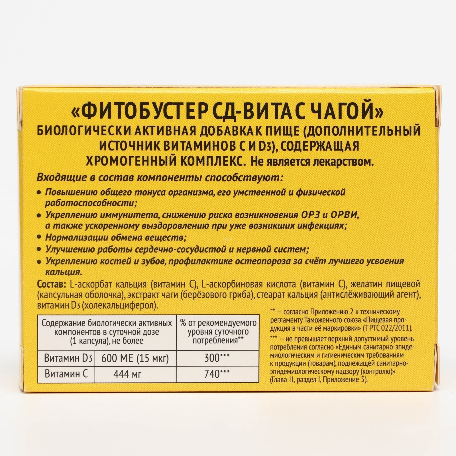 «ФИТОБУСТЕР «CD-VITA с Чагой» («PHYTOBOOSTER CD-Vita with Chaga») - Твердые желатиновые капсулы.