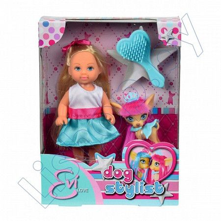 Кукла Evi Love (Эви Лав) - Dog Stylist (Собачий Стилист) от бренда SIMBA. Не смотря на то, что кукла Evi (Эви) очень маленькая по своим размерам, у нее очень большая фантазия и огромное желание творить что-то новое и необычное. Она попробовала себя в роли настоящего стилиста для маленьких собачек - это наглядно показано в данном игровом наборе, который включает в себя неугомонную Еви и ее собачку с длинной шерстью. Эту шерсть и будет приводить в порядок кукла Еви с помощью вашего ребенка. Наводить красоту на голове у собачки можно будет красивой расческой, которая есть в наборе.Такой необычный игровой наборчик очень понравятся маленьким принцессам и они с удовольствием будут выдумывать различные сюжеты для игр со своей маленькой куколкой!