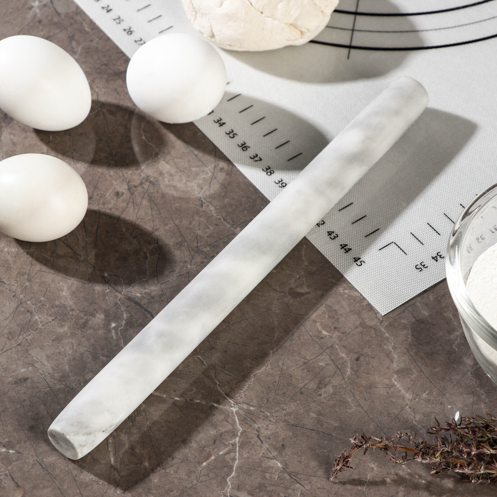 Скалка из мрамора Magistro, 25×2,2×2,2 см, цвет белый