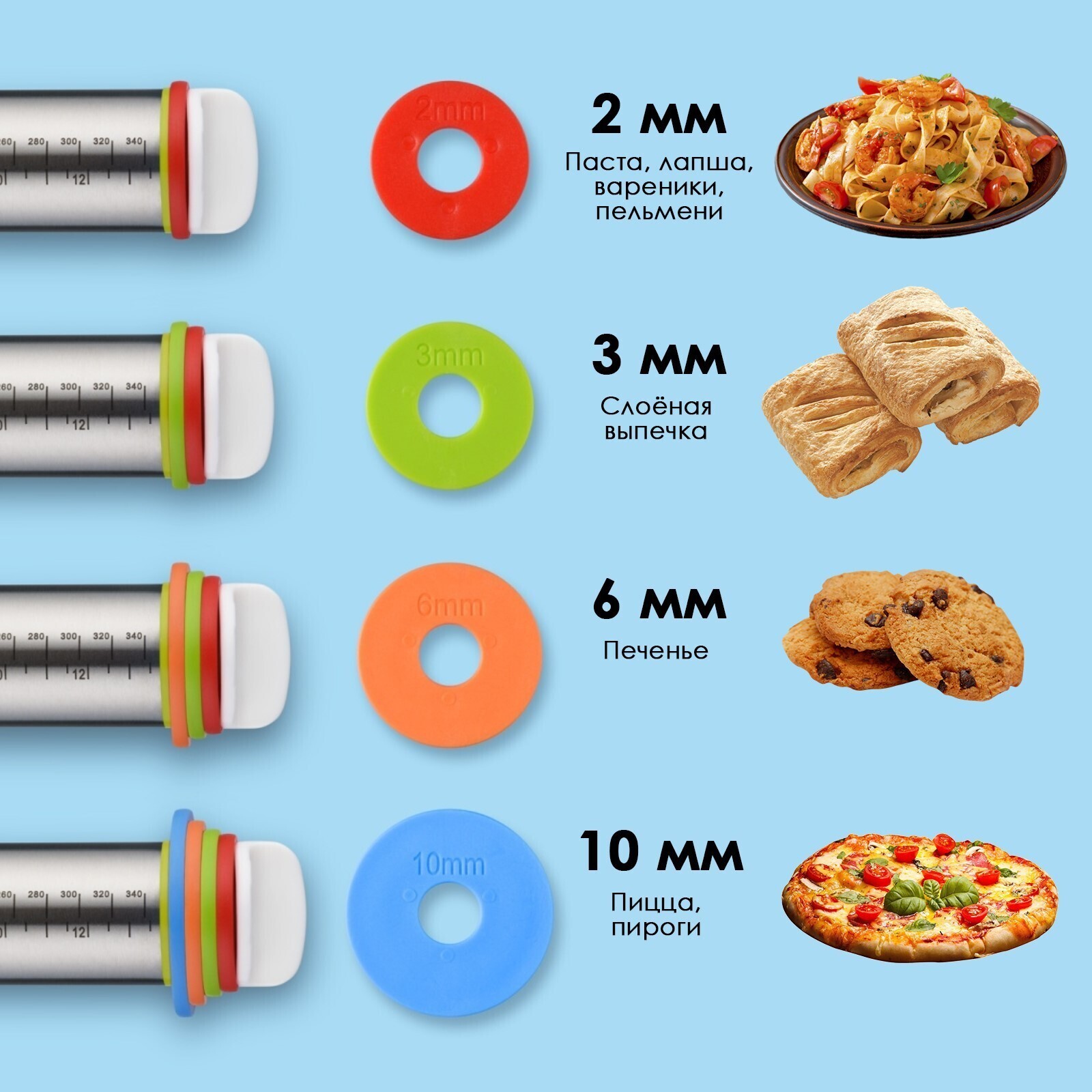 Скалка с ограничителями кондитерская, 43×5,5 см, рабочая часть 35 см