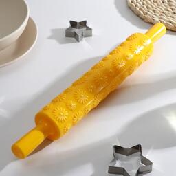Скалка кондитерская «Ромашки», 37 см, фактурная, цвет МИКС