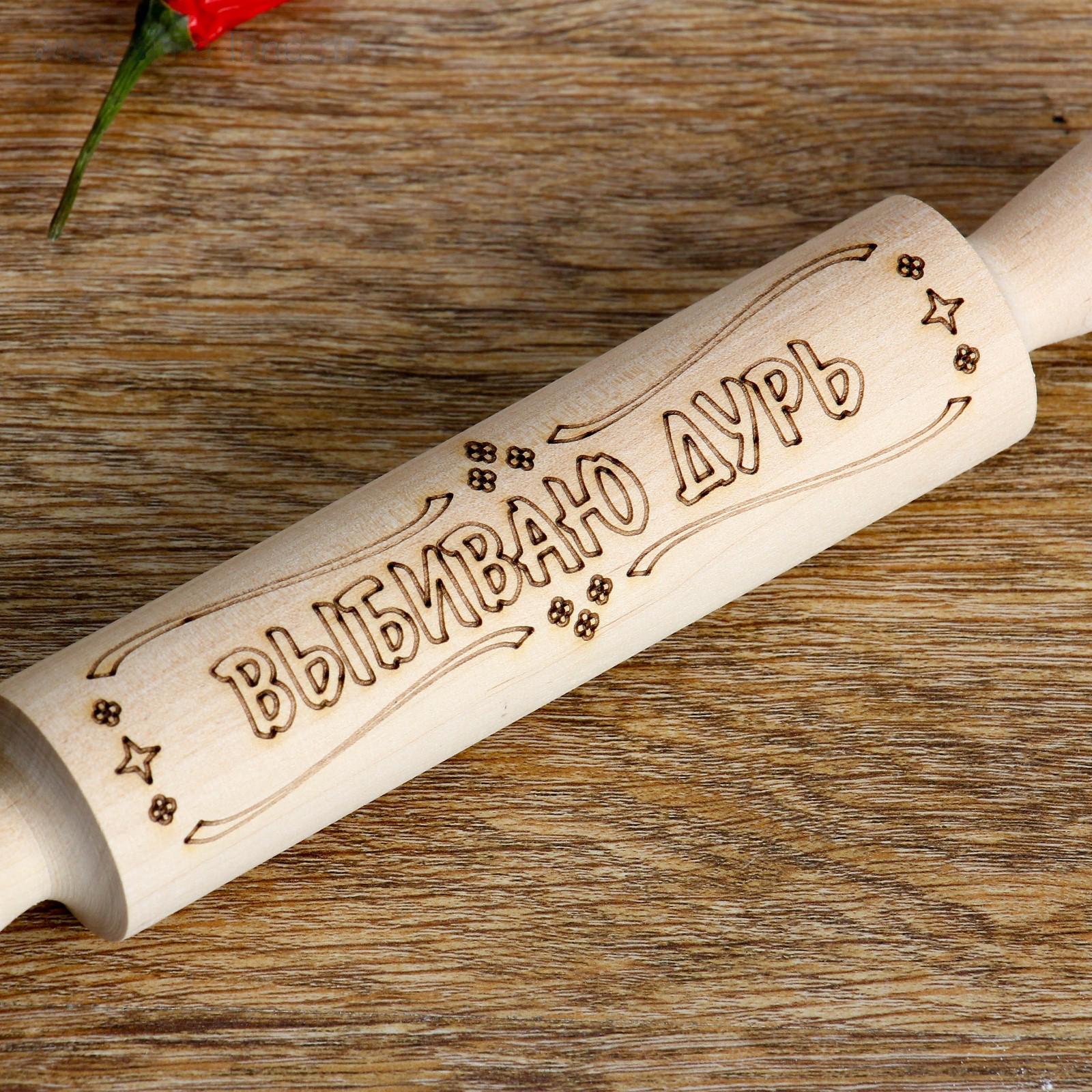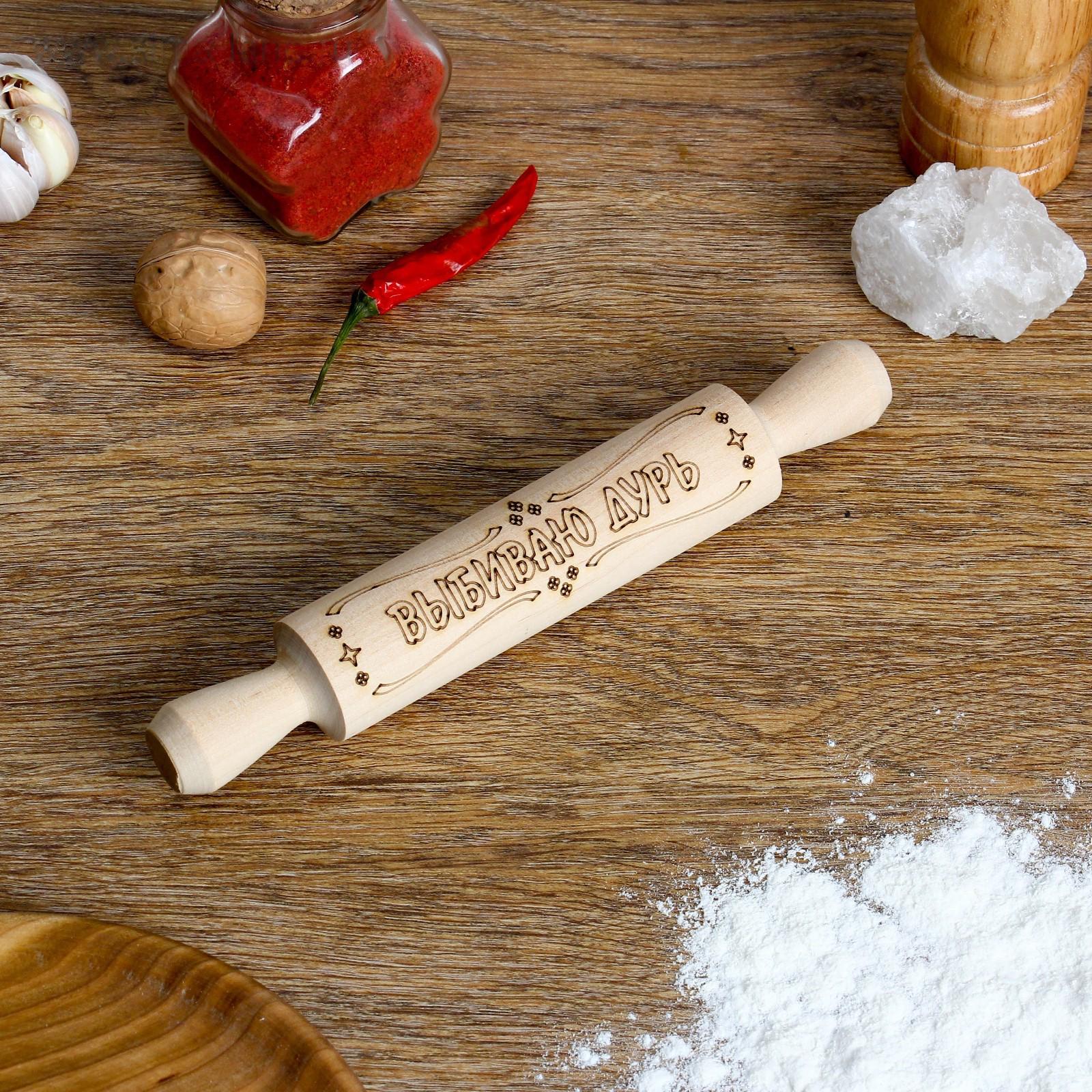 Скалка с надписью "Выбиваю дурь", берёза, 21,5×3,5 см