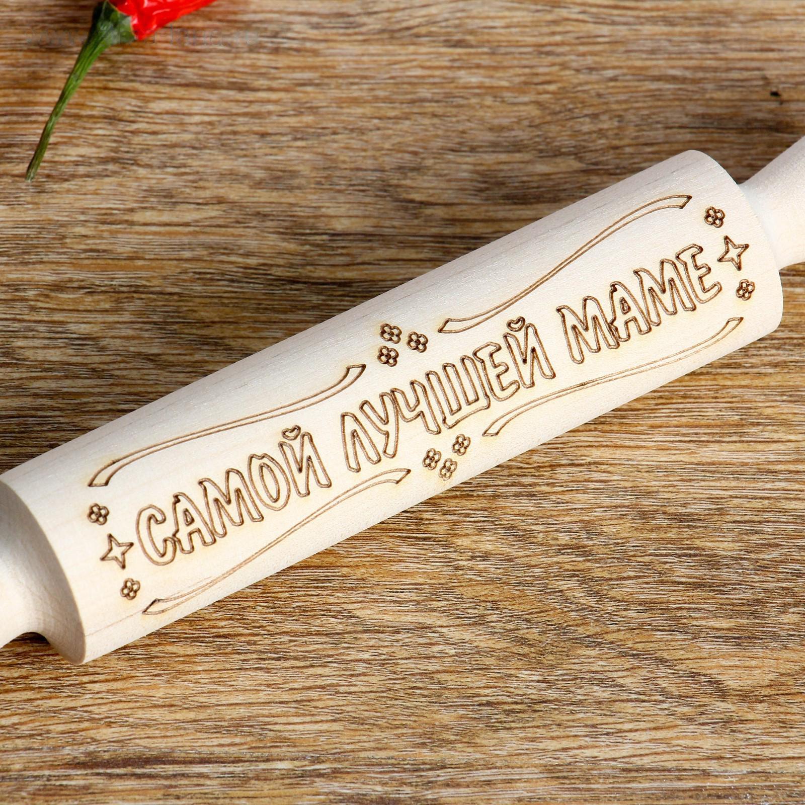 Скалка с надписью "Самой лучшей маме", берёза, 21,5×3,5 см