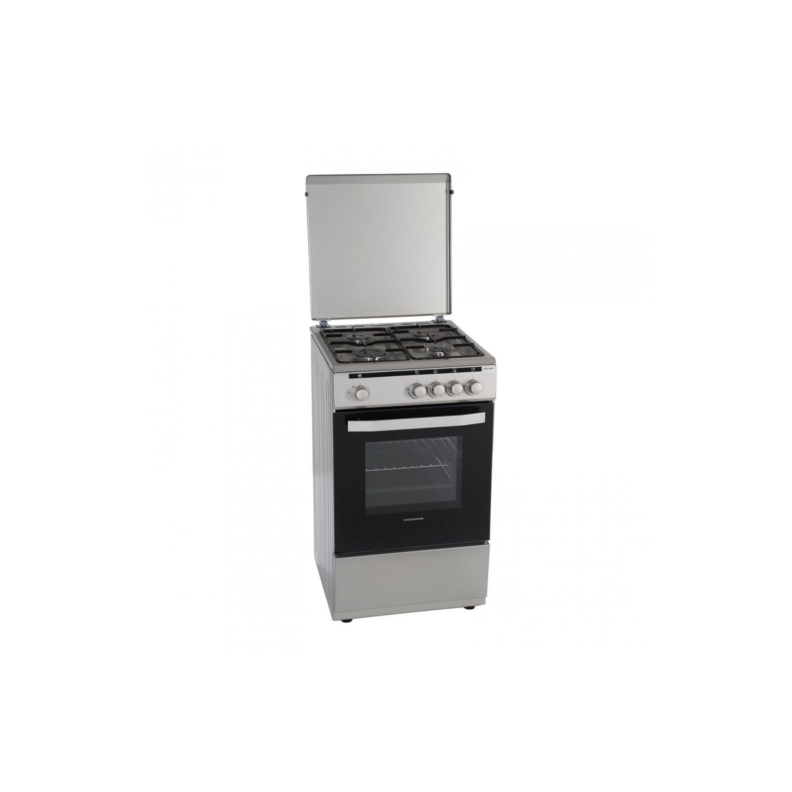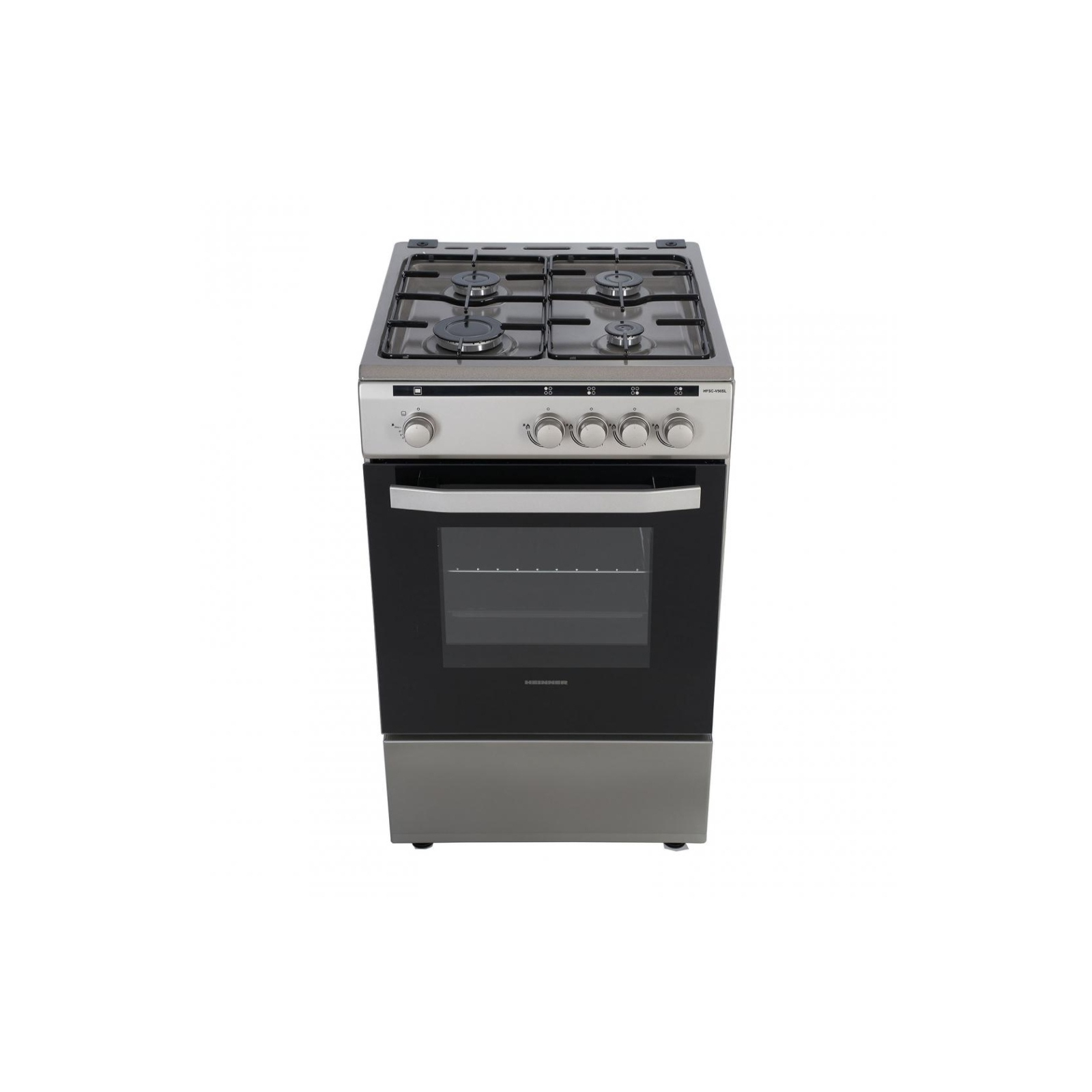 Газова плита Heinner HFSC-V50SL, 50x50 см, 4 газові конфорки, емальована підставка для каструлі, металева кришка, газова безпечна плита та духовка, подвійні скляні дверцята духовки, запасні насадки для скрапленого газу в комплекті, деко та решітка, розміри (ШxГxВ): 50x49.5х85 см