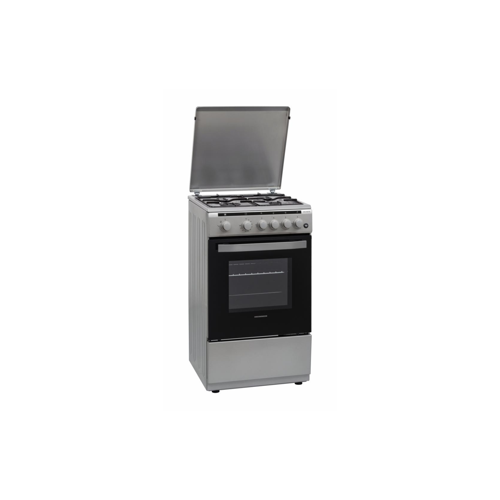 Газова плита Heinner HFSC-V50LITSL, 50x50см, 4 газові конфорки, емальована підставка для каструлі, металева кришка, автозапалювання, безпечна газова плита та духовка, таймер, внутрішнє освітлення в духовці, знімні дверцята духовки з подвійним склом комплекті, духовка деко та решітка, Розміри (ШхГхВ): 50х50х85 см.