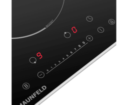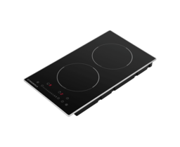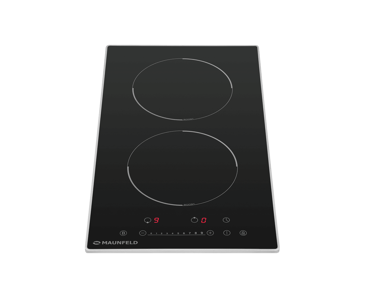 Компактная индукционная варочная панель шириной 30 см выполнена из жаропрочного износостойкого стекла (стеклокерамики) черного цвета. Имеет элегантную металлическую окантовку по периметру, которая служит для защиты от сколов на торцах и не дает жидкости, убежавшей при готовке, попасть на столешницу.Диаметр каждой из 2-х конфорок составляет 180 мм. Одна конфорка мощностью 1500 Вт (бустер 1800 Вт), вторая - 2000 Вт (бустер 2300 Вт). Сенсорное управление, расположенное на фронтальной поверхности, дает возможность: выбрать уровень мощности для каждой конфорки (9 уровней)заблокировать панель от детейвыставить таймер (для отключения одной или нескольких варочных зон по истечении заданного времени) Предусмотрены следующие функции, упрощающие эксплуатацию плиты: Индикатор остаточного тепла, который укажет, какая из варочных зон ещё горячая.Детектор диаметра посуды, позволяющий экономить электроэнергию, нагревая только необходимую полезную поверхность конфорки.Автоматическое отключение в случае перегрева, долгого простоя работающей конфорки, попадания влаги на поверхность готовки и использования неподходящей посуды. Для приготовления на индукционной варочной панели пригодна посуда из ферромагнитного материала с ровными краями и плоским дном.