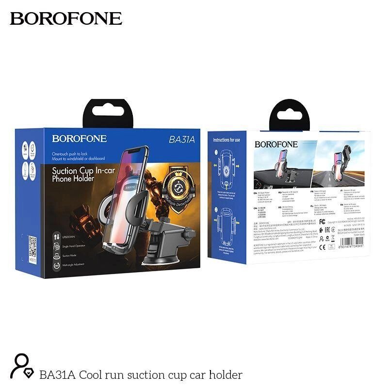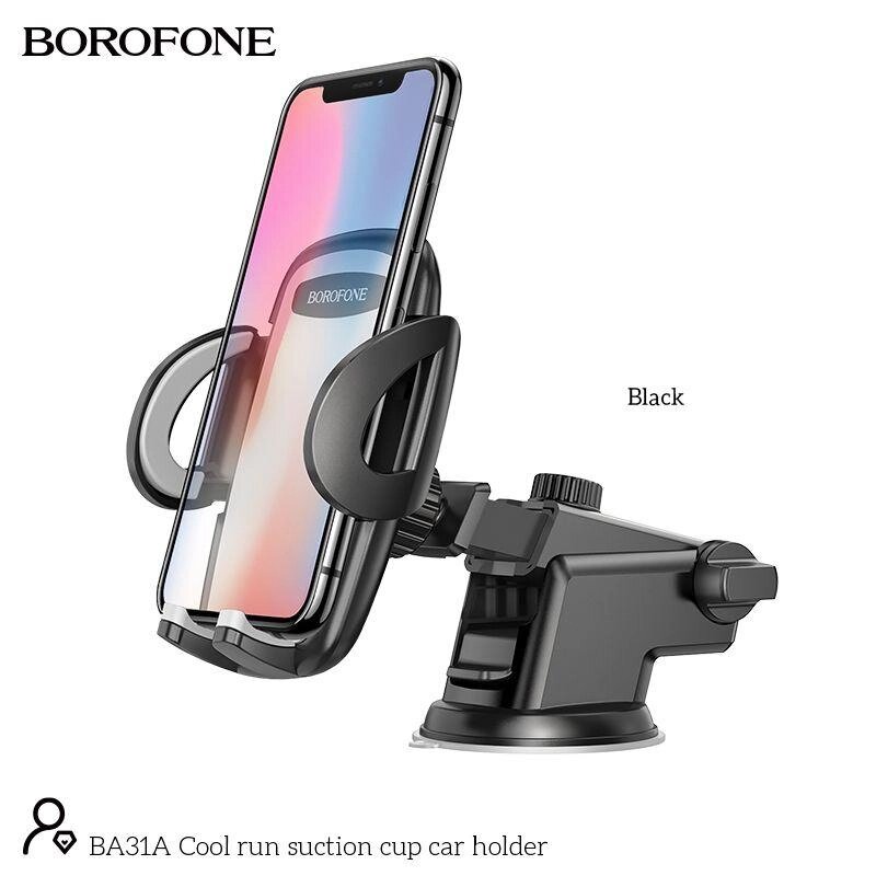 Автомобильный держатель BOROFONE BA31A на присоске, на панель, стекло, черный