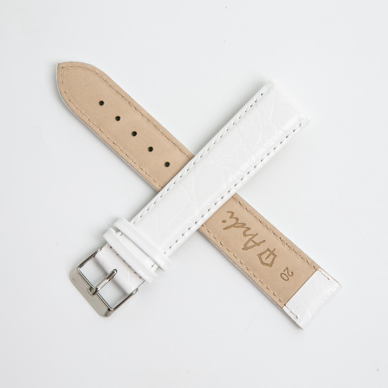 Ремешок для часов, мужской, 20 мм, запряжник 90 мм, горт 125 мм, натуральная кожа, белый, удлиненный