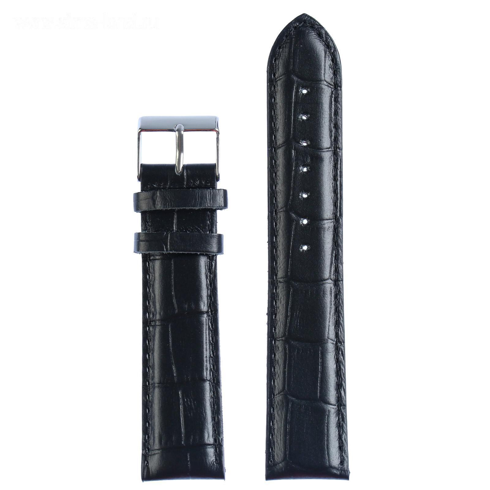Ремешок для часов, мужской, 22 мм, запряжник 85 мм, горт 125 мм, кожа, удлиненный, черный