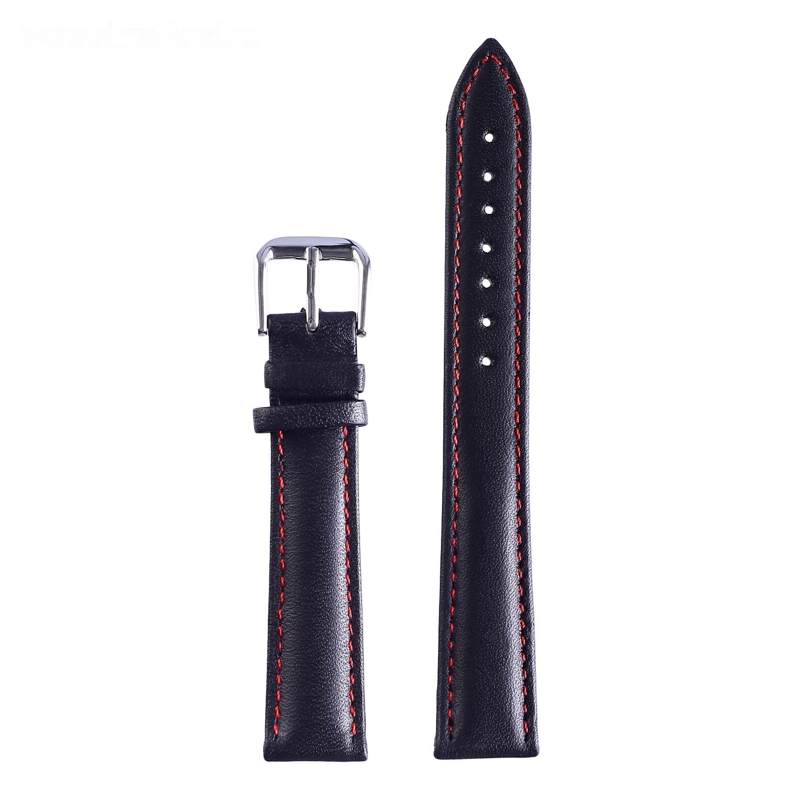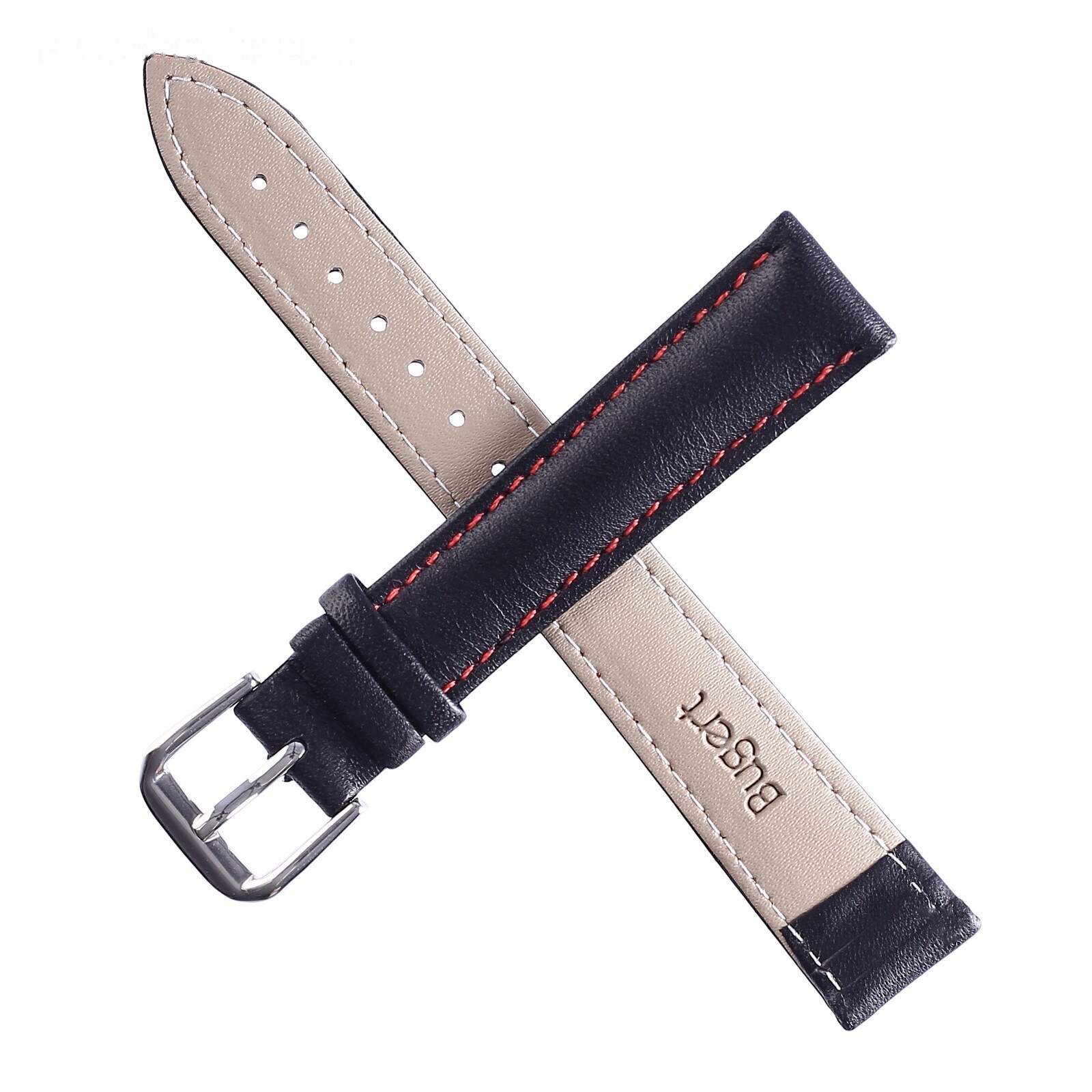 Ремешок для часов "Bugert" 16 мм, натуральная кожа, l=20 см, черно-красный