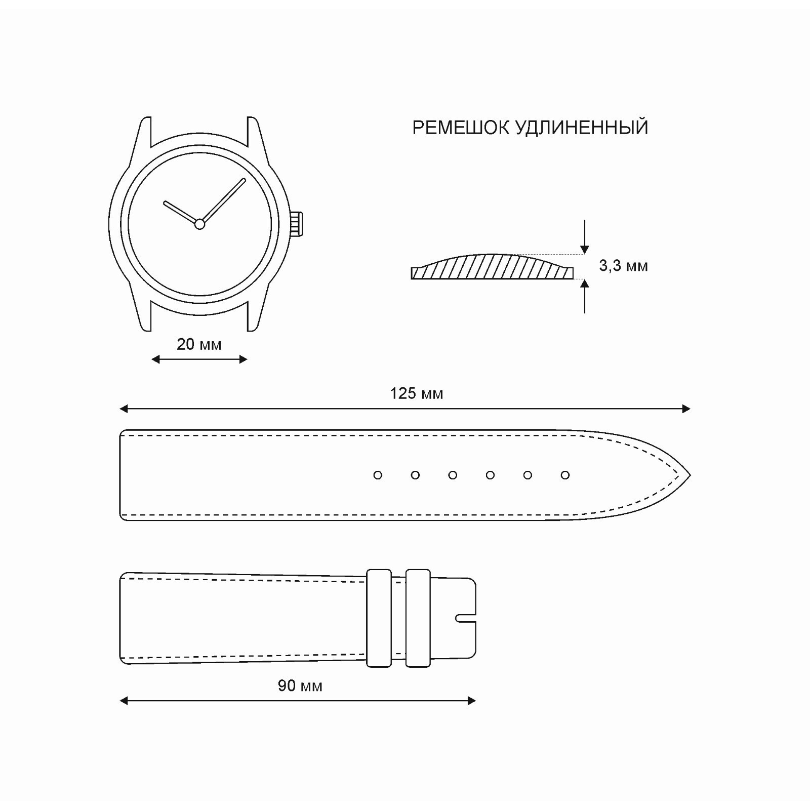 Ремешок для часов, мужской, 20мм, запряжник 90мм, горт 125мм, натуральная кожа, удлиненный