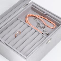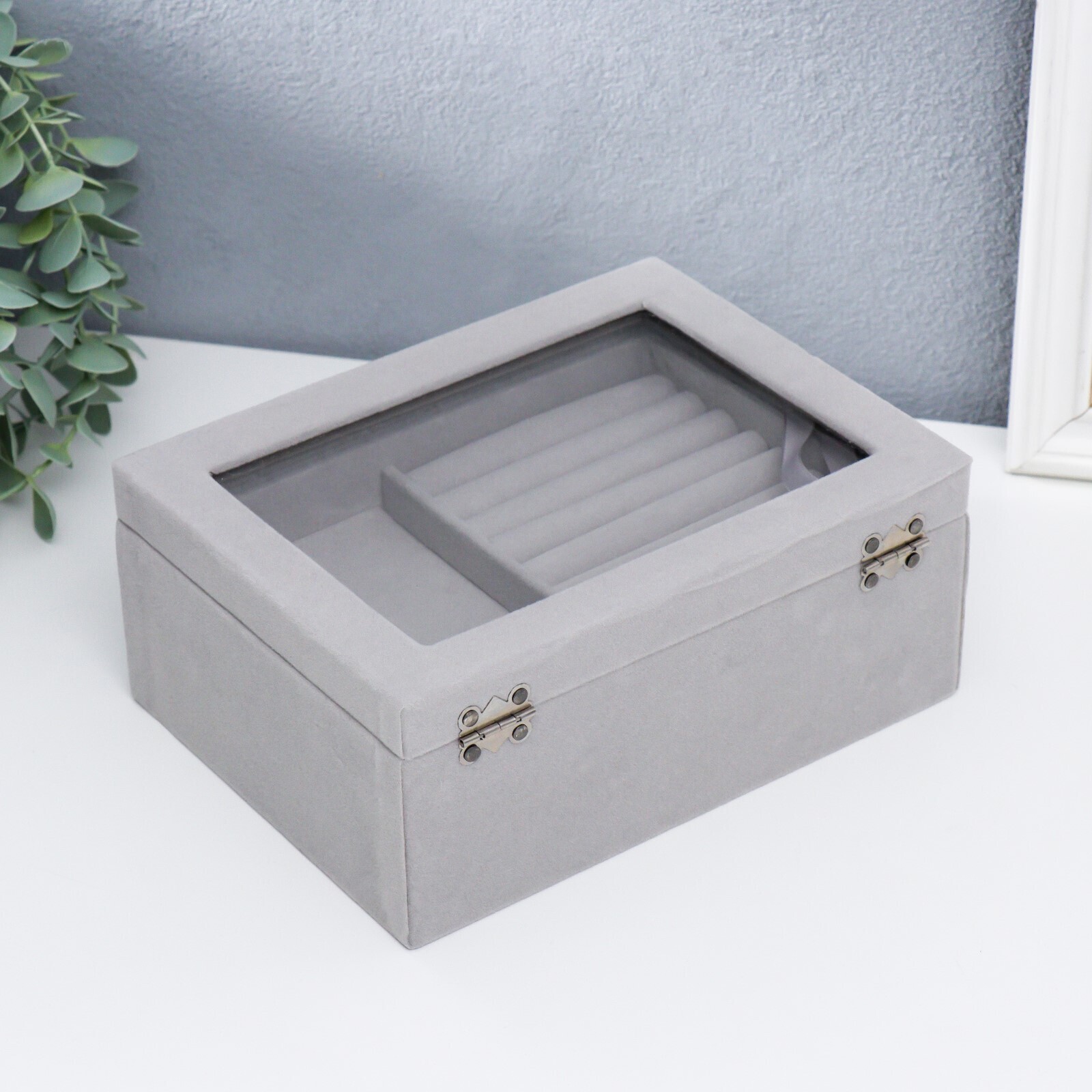 Шкатулка бархат для украшений сундук с ящичком "Серый туман" 8,5х15х20 см