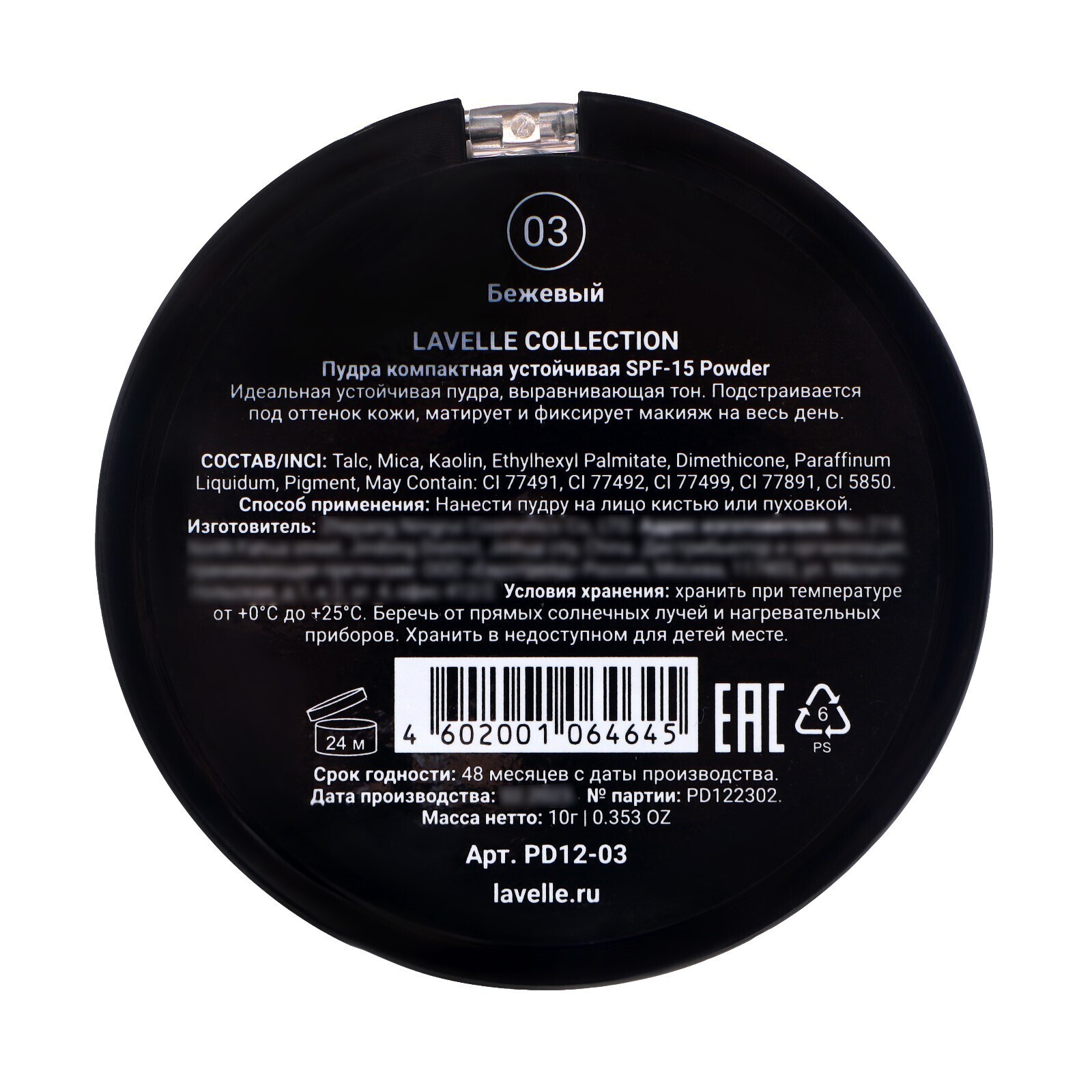 Пудра компактная устойчивая SPF-15 Powder LavelleCollection тон 03 бежевый