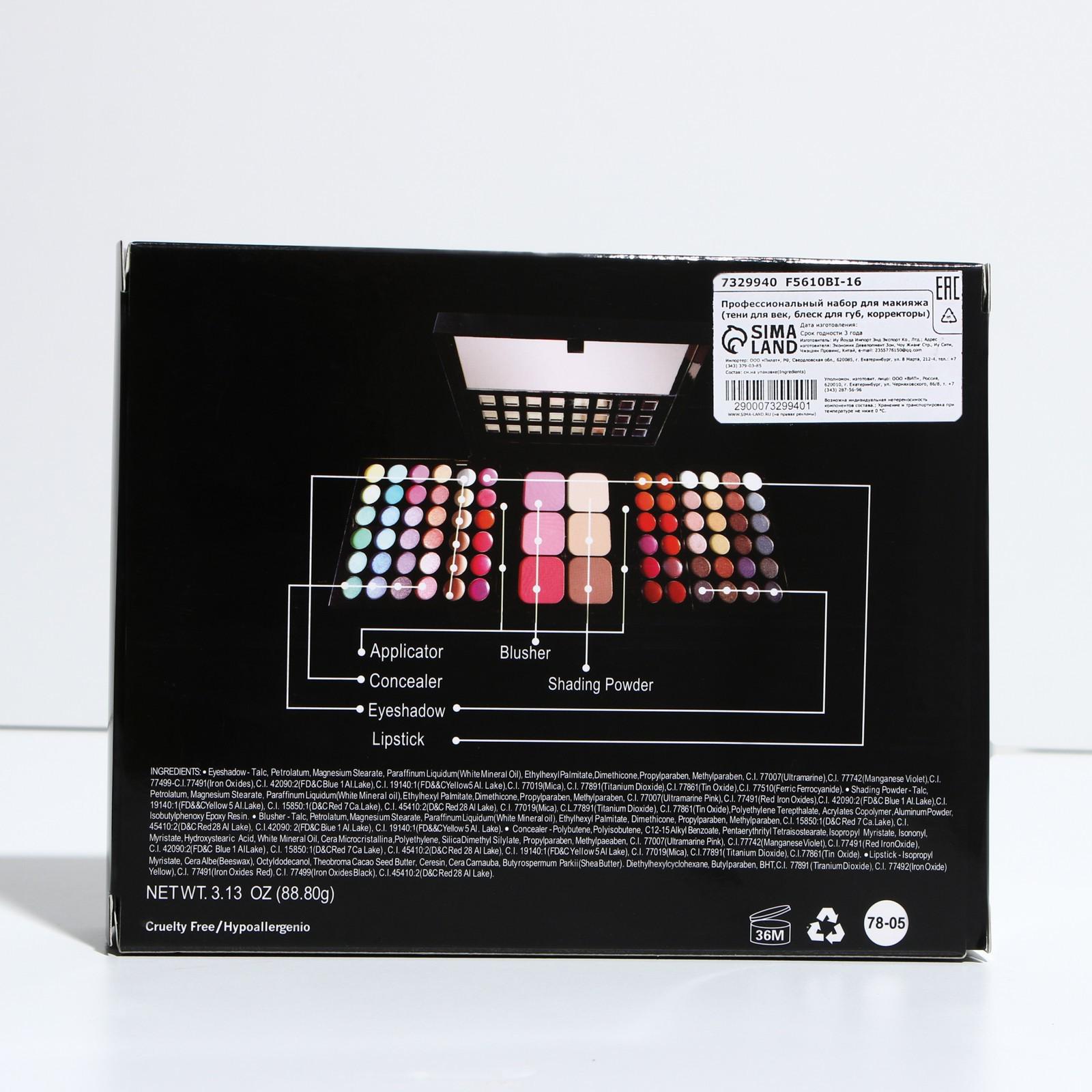 Профессиональный набор для макияжа (тени для век, блеск для губ, румяна, корректоры)