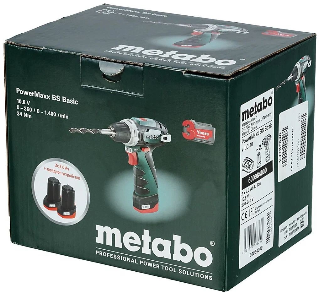- Изготовитель Германия, Metaboallee 1, D-72622, Nuertingen
