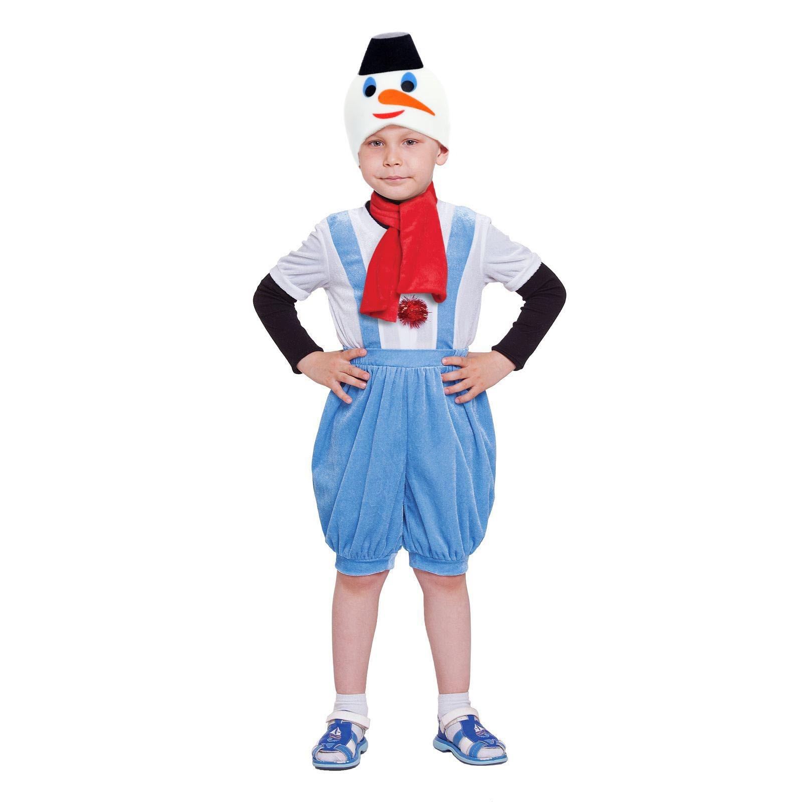 Карнавальный костюм "Снеговик с чёрным ведром", комбинезон, шапка, шарф, рост 110-116 см