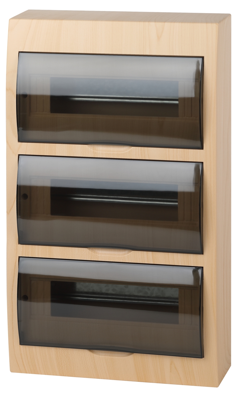 Трехъярусный распределительный навесной щит на 36 модулей ЭРА ЩРН-П-36 BOXF в цвете сосна, с тонированной дверцей. Пластиковый распределительный корпус специальной серии ЭРА ECO VILLAGE - идеальный вариант щитков для загородного жилья и объектов деревянного строительства. Эстетично вписывается в интерьер загородных домов, дач, шале. Защита от влаги и пыли - IP41. Тип установки - навесной. Щит изготовлен из ABS-пластика, устойчивого к воздействию ультрафиолета. Успешно эксплуатируется при температурах от -20 до +40 градусов. Боксы ЭРА ECO VILLAGE устанавливаются внутри жилых помещений, под навесом. В комплект входит набор для монтажа, шина N, шина PE, маркировочная лента.