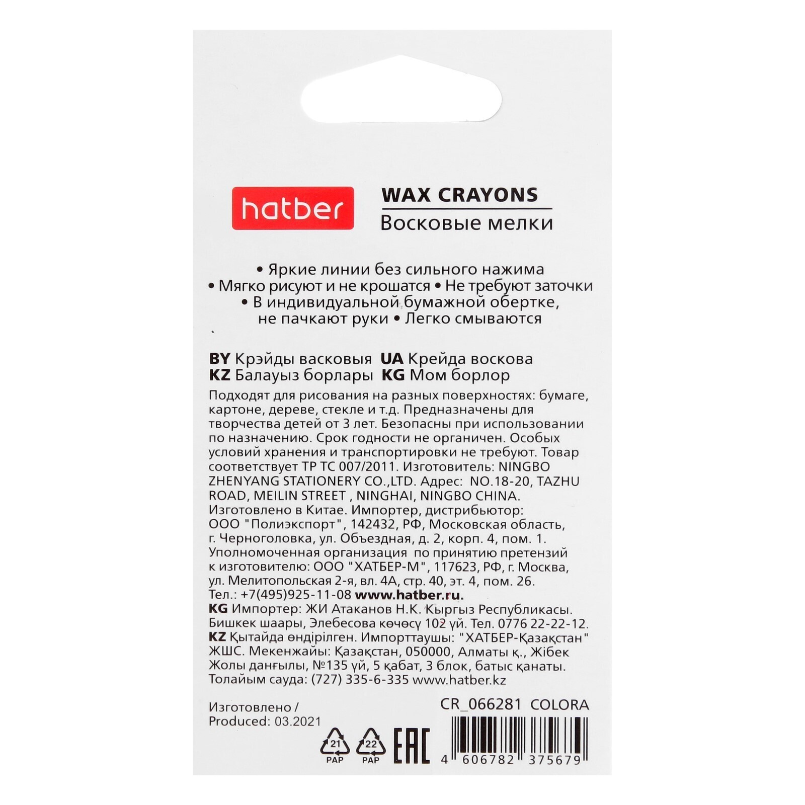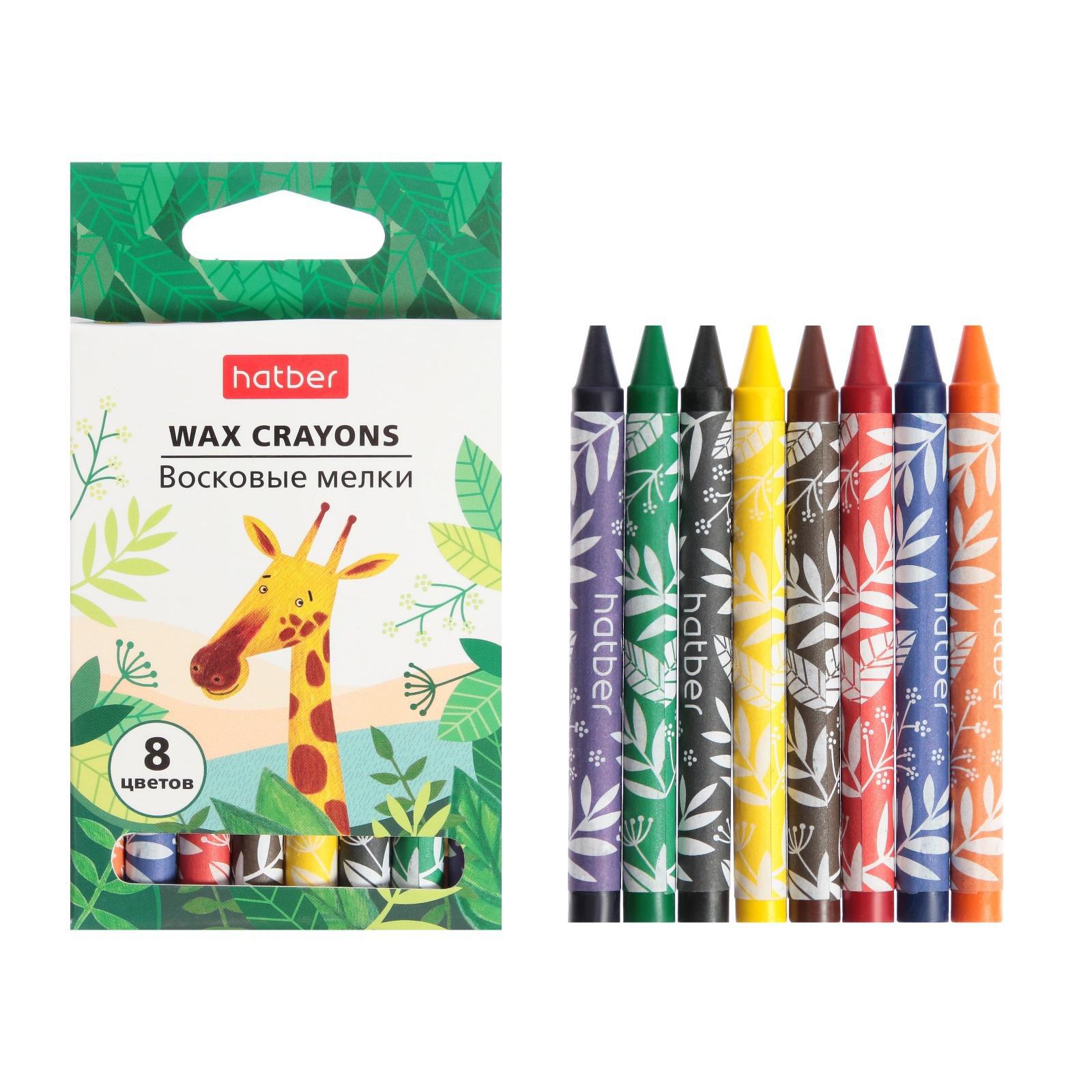 Мелки восковые 8 цветов Hatber "Жираф", диаметр 9 мм, круглый корпус, в картонной коробке с европодвесом