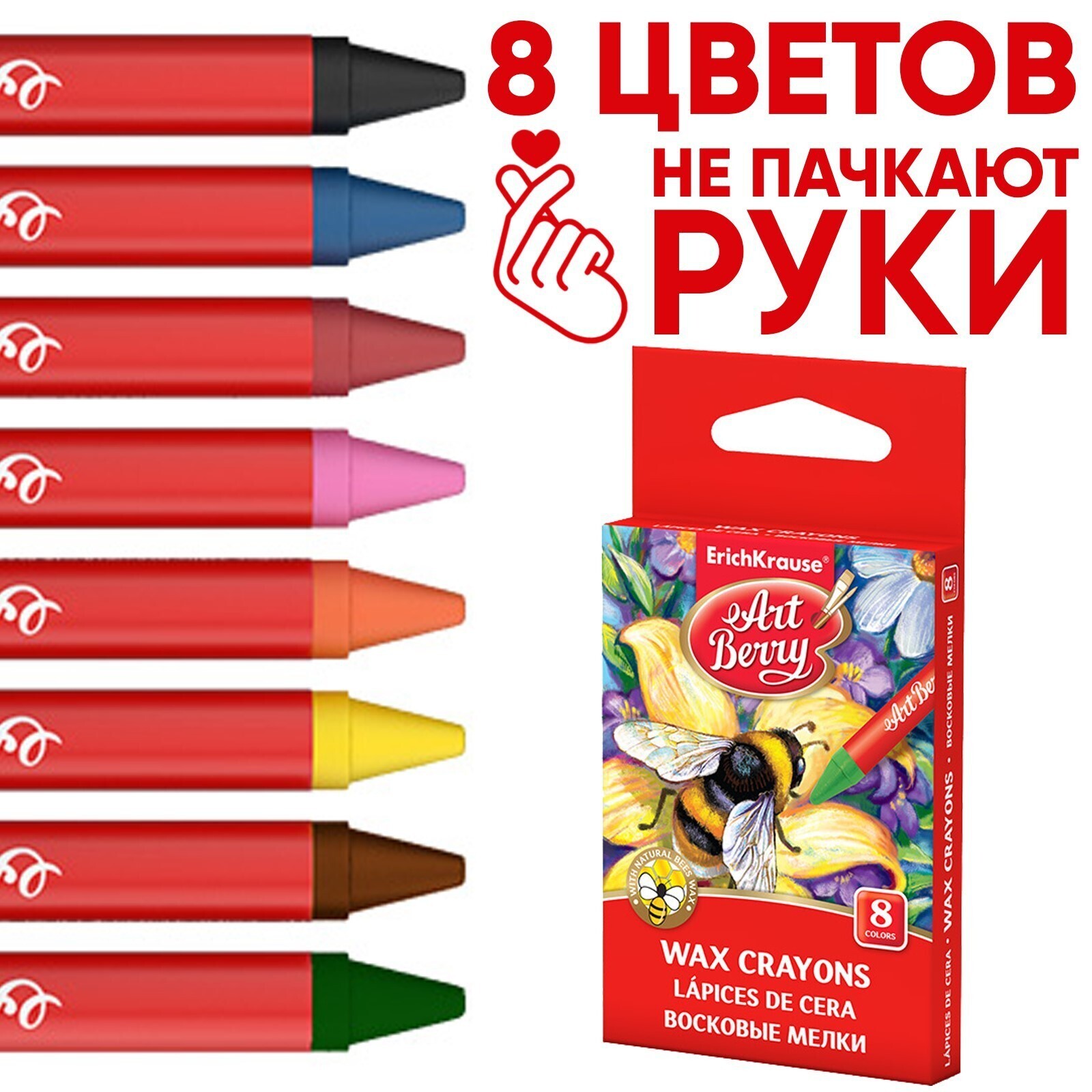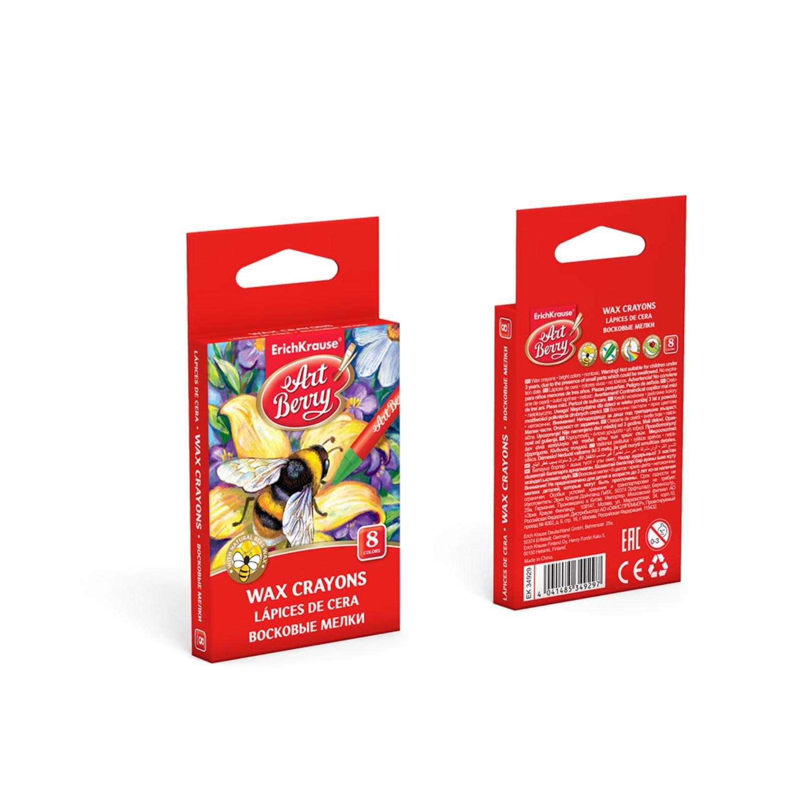 Мелки восковые 8 цветов ErichKrause ArtBerry, диаметр 7 мм, на основе пчелиного воска, европодвес
