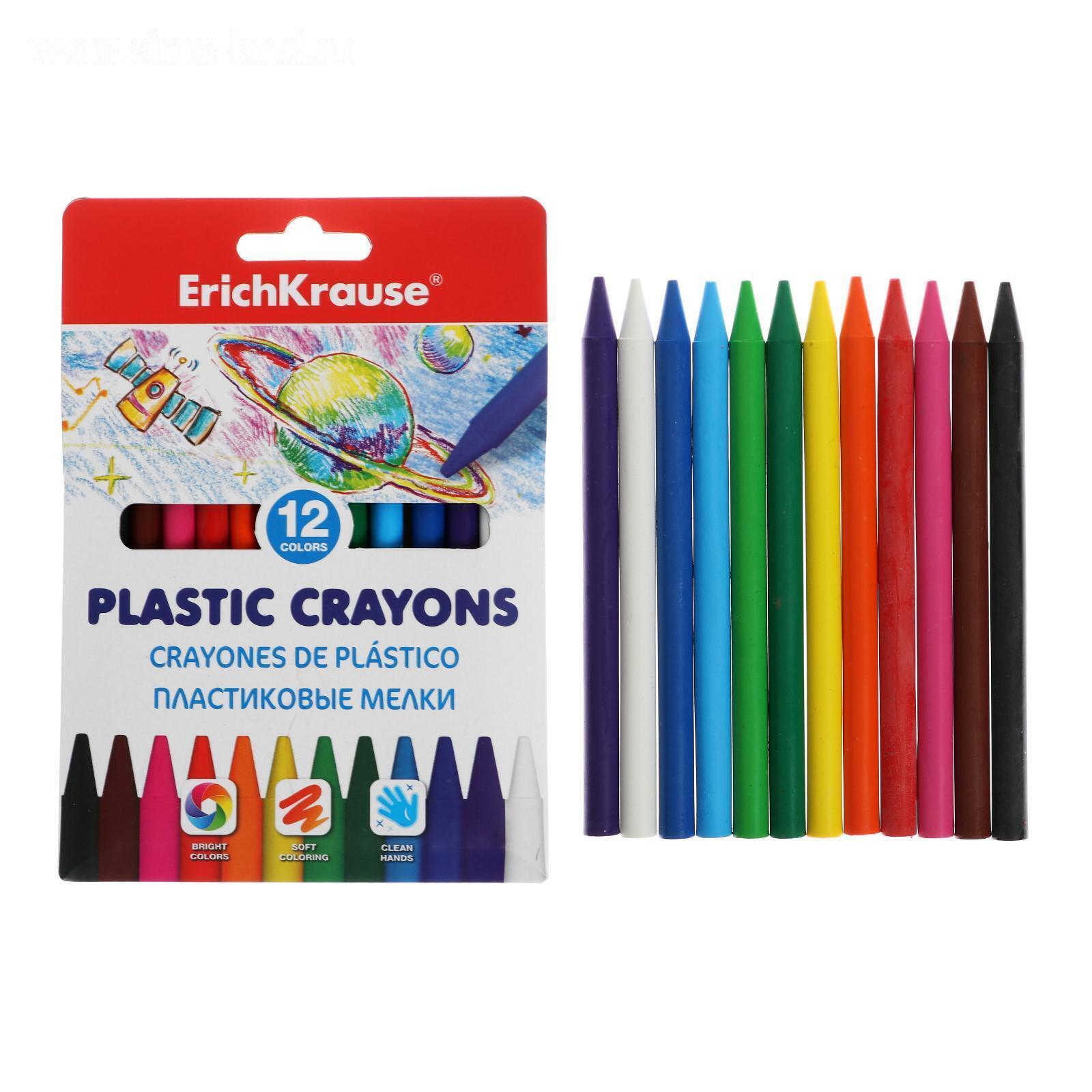 Мелки пластиковые 12 цветов ErichKrause, диаметр 7 мм, заточенные