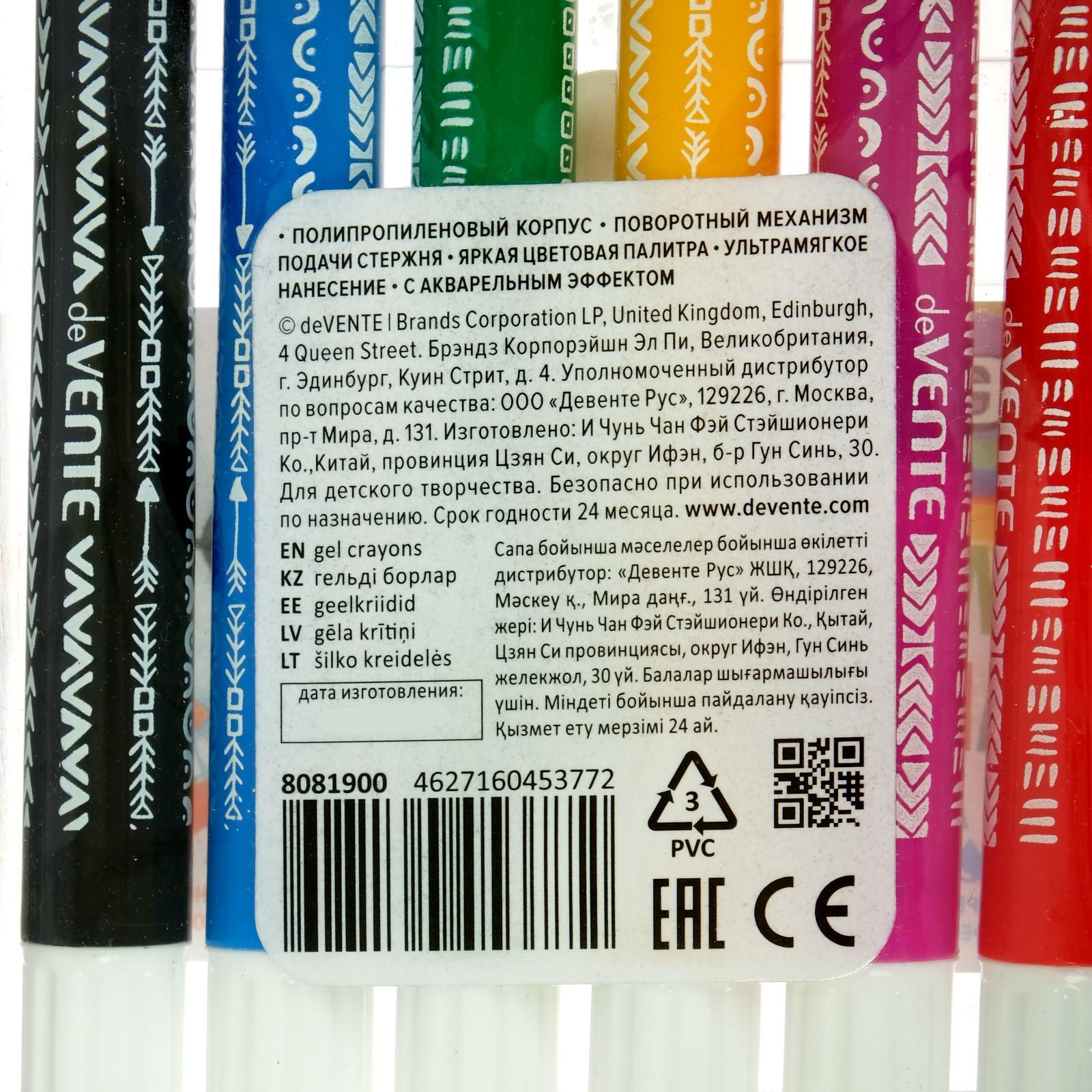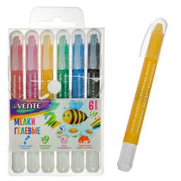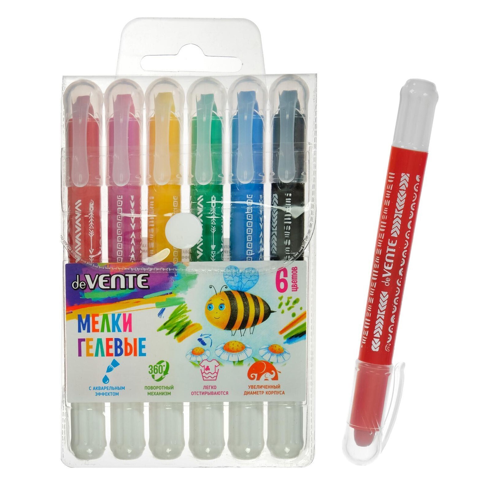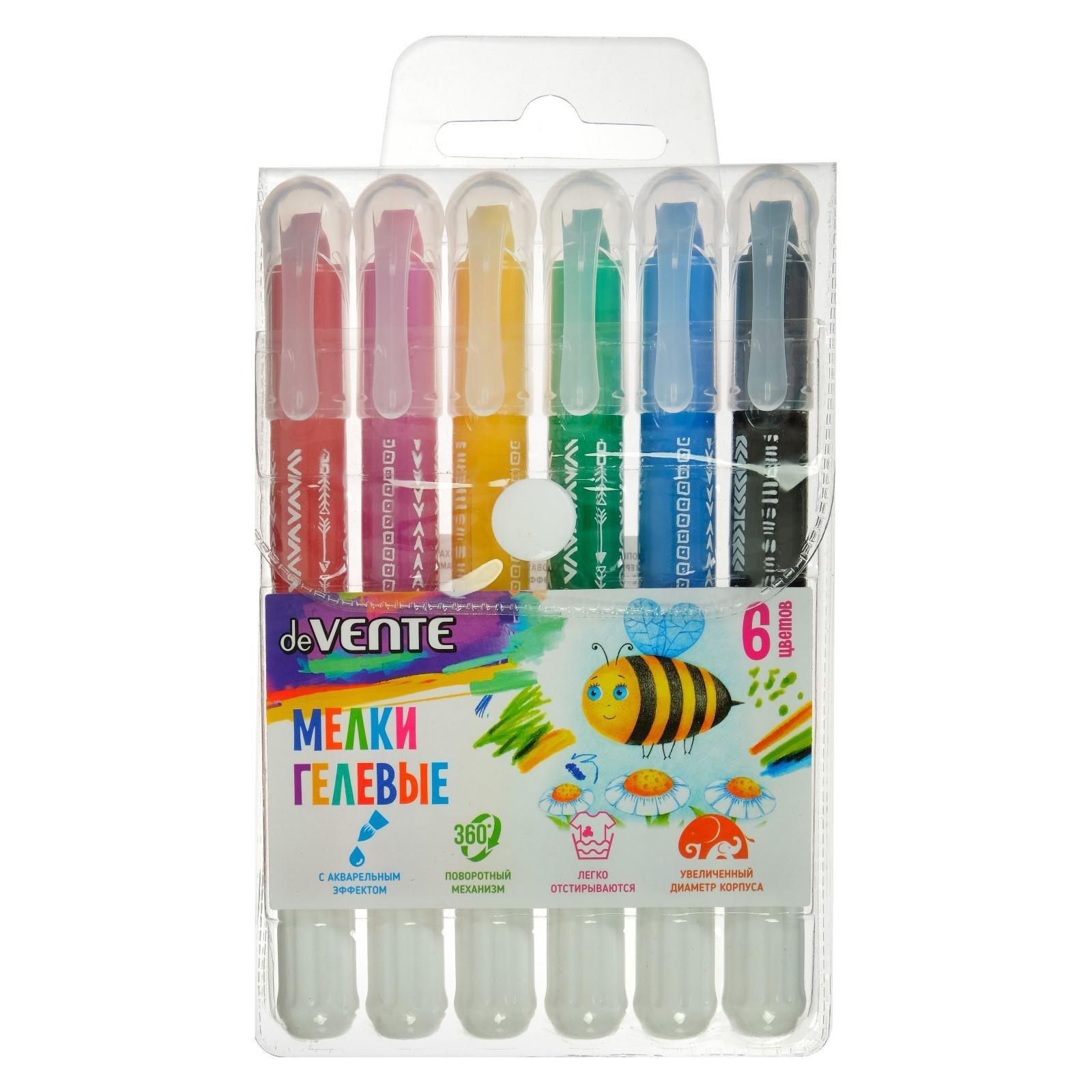 Мелки гелевые 6 цветов deVENTE, супермягкие, с акварельным эффектом, пластиковый корпус с поворотным механизмом, в блистере