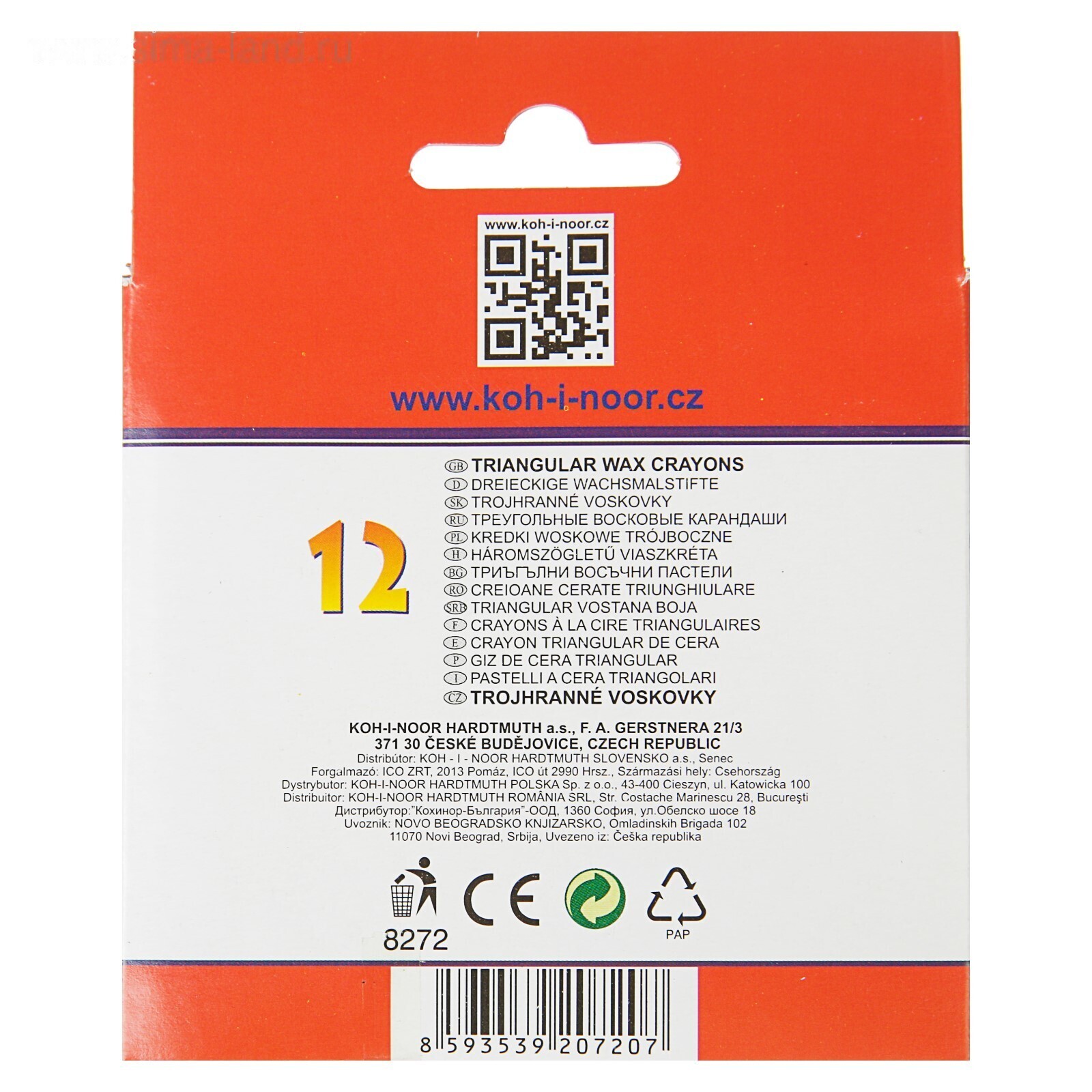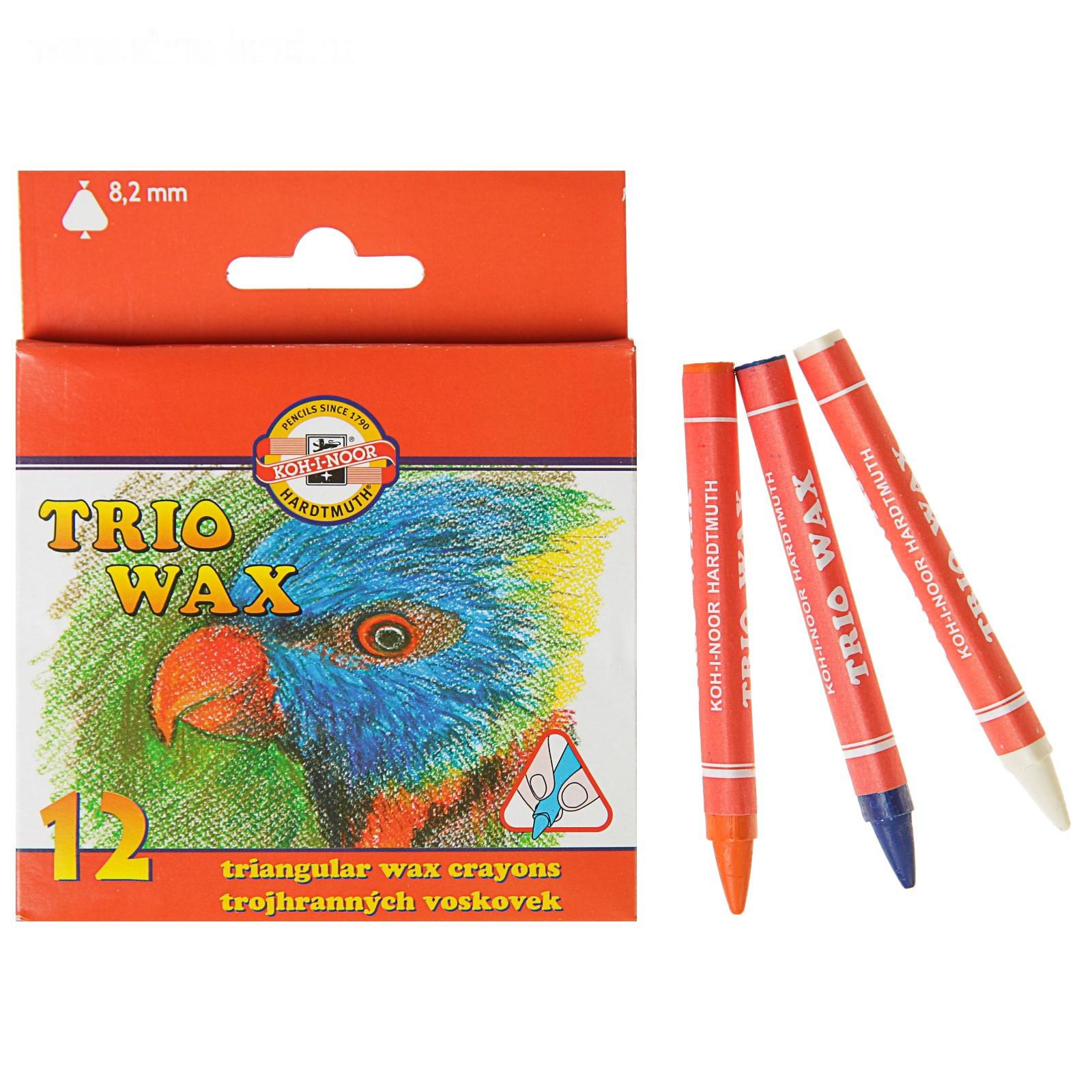 Мелки восковые 12 цветов 7.8 мм, Koh-I-Noor 8272/12, трехгранные, в картонной упаковке, L=90 мм