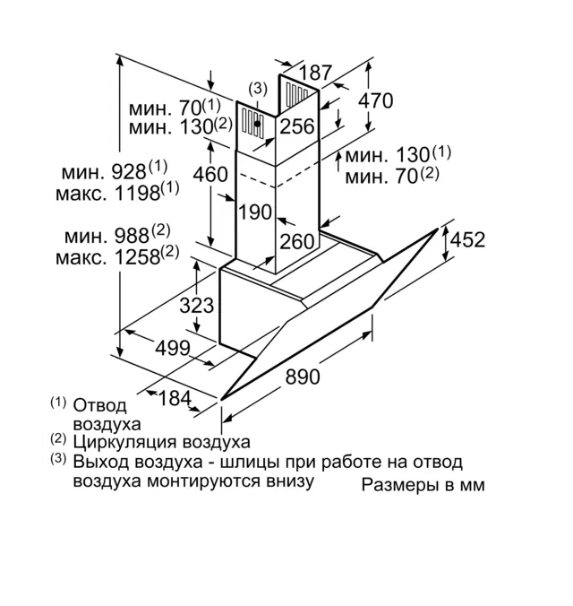 • Максимальная производительность отвода 420 м³/ч