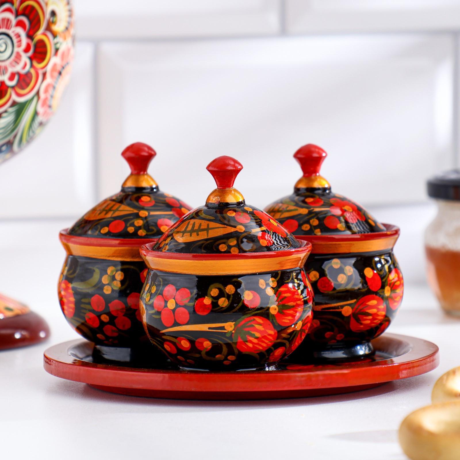 Набор специй «Земляничка», средний, 15×15×6 см, хохлома