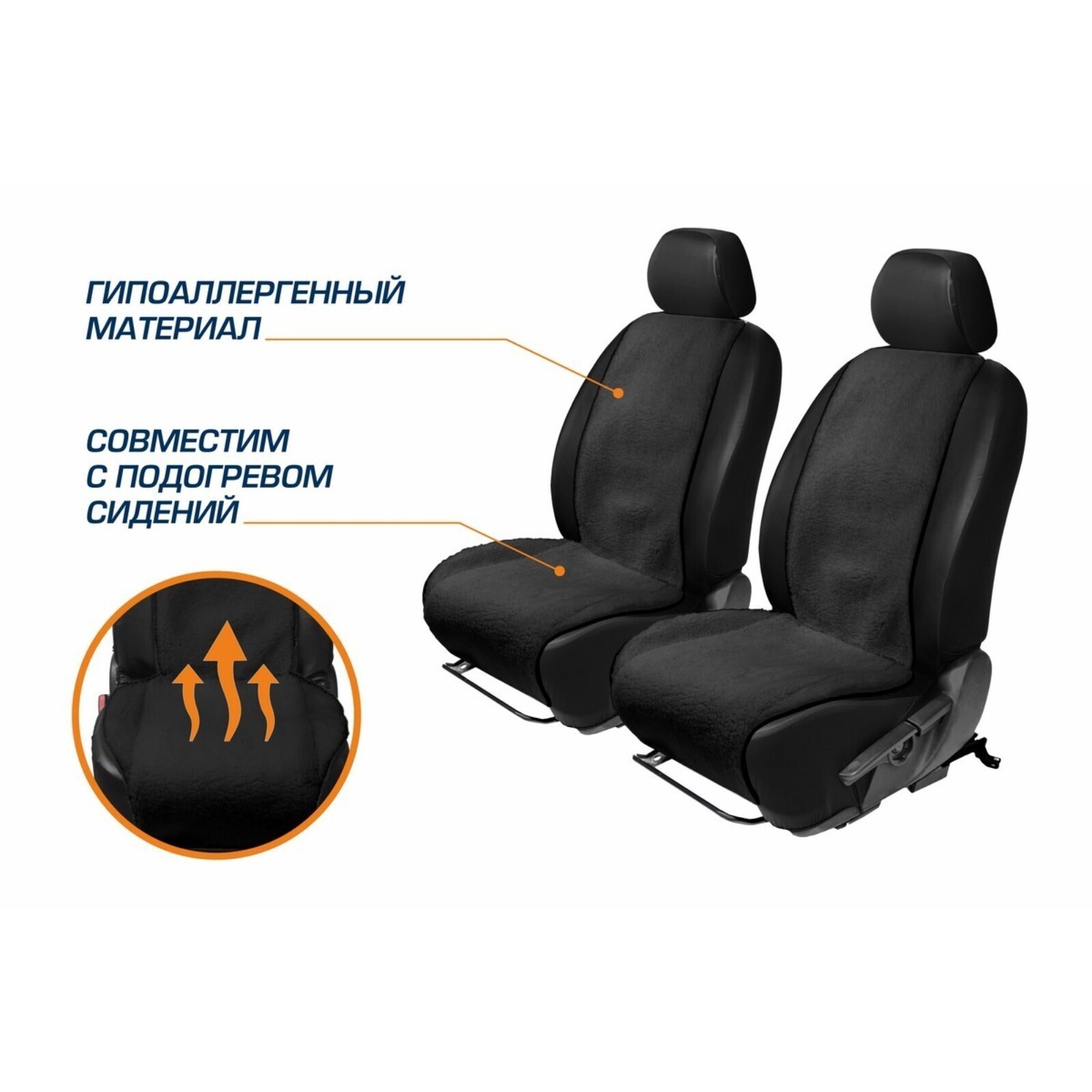 Универсальные меховые накидки для сидений автомобиля AutoFlex - незаменимый аксессуар для комфортных поездок в любое время года. Меховые накидки выполнены из натуральной овечьей шерсти: гипоаллергенный материал совместим с подогревом сидений и обладает высокой теплопроводностью. В холодное время года накидки будут сохранять тепло, а летом – поддерживать прохладу. Благодаря мягкому ворсу высотой 12 мм даже дальние поездки станут комфортнее.