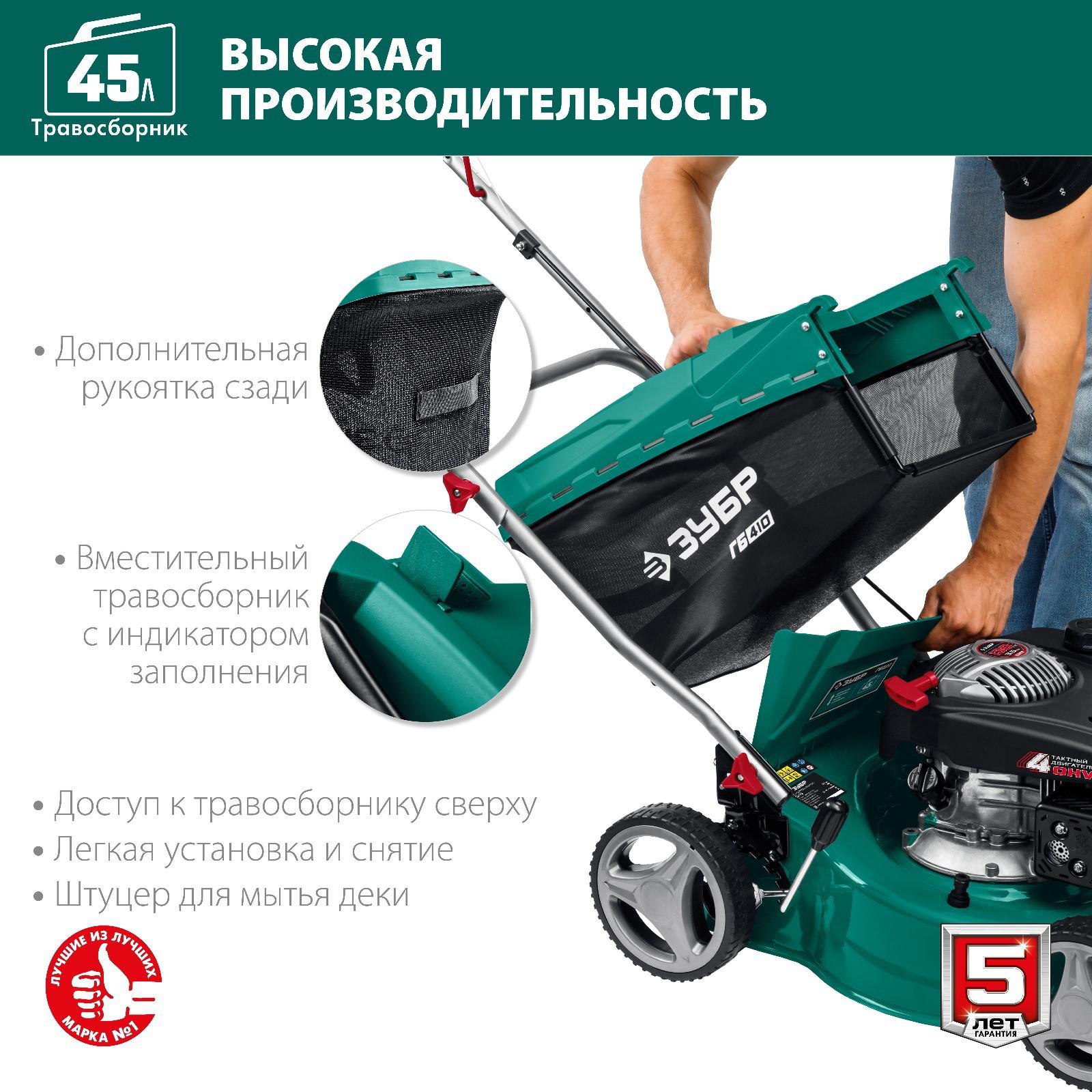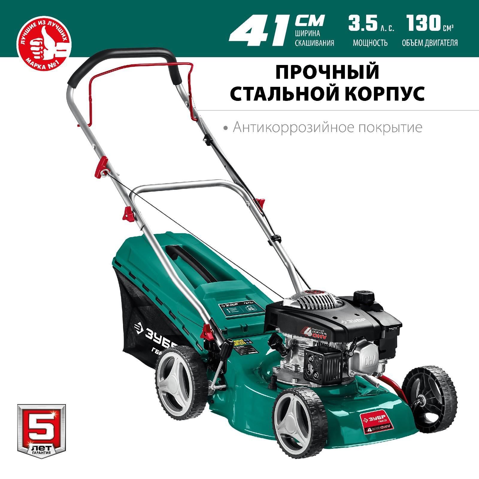 Газонокосилка бензиновая ЗУБР ГБС-410, 3.5 л.с., 2600 Вт, скос 410х75 мм, 3000 об/мин