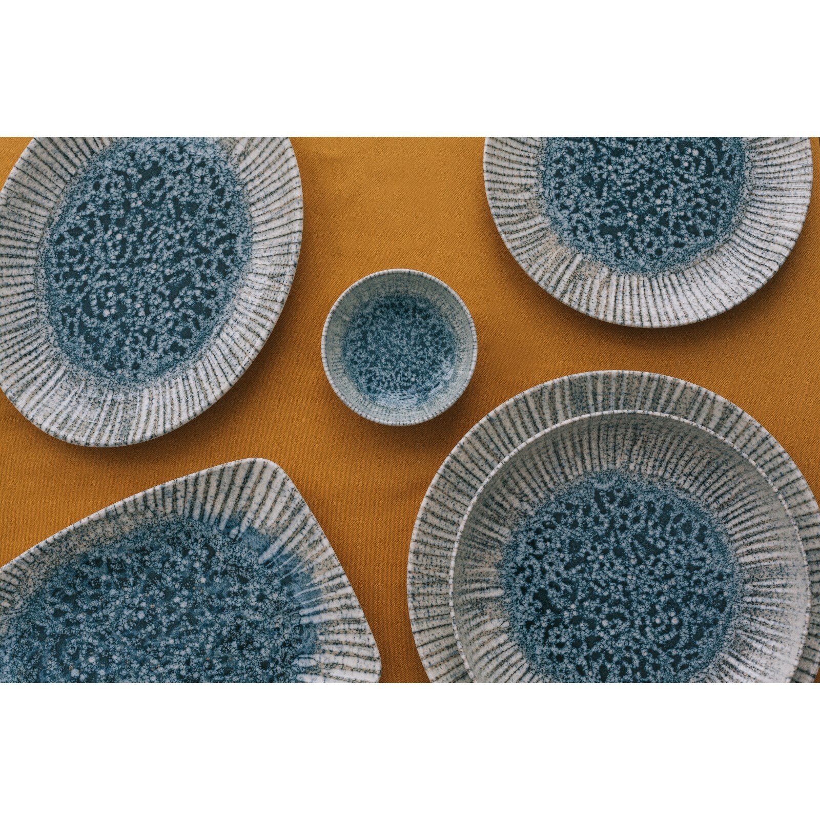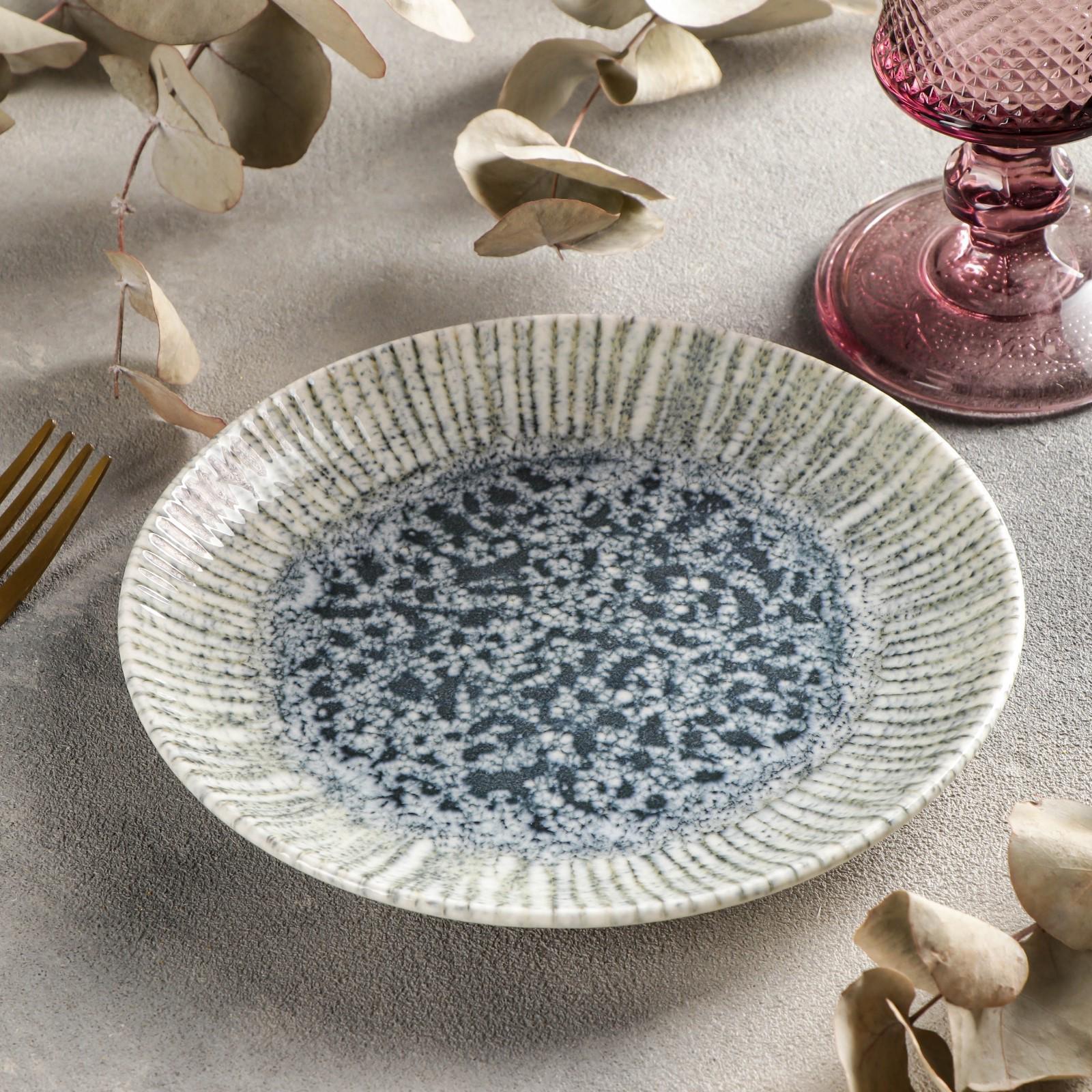 Iris blue сочетает нежно-голубой фон и синие вкрапления в центре. Посуда поможет создать впечатляющую сервировку с эффектом глубины.