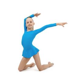 Купальник гимнастический с юбкой, с длинным рукавом, размер 34, цвет бирюзовый