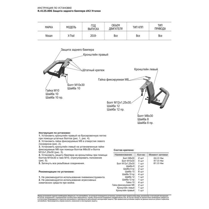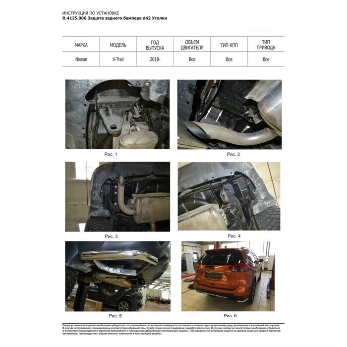 Защита заднего бампера d42 уголки Rival для Nissan X-Trail T32 рестайлинг 2018-R. 4125.006 460036