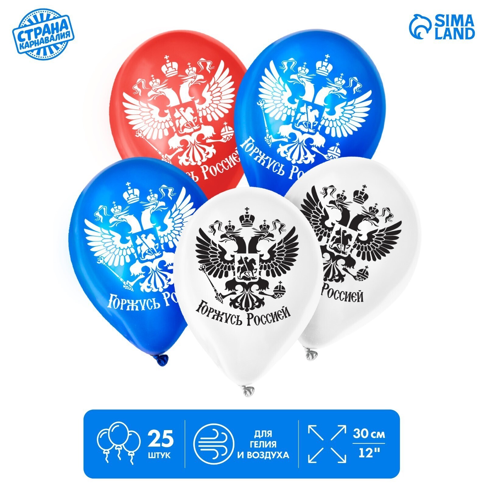 Шар воздушный 12" «Горжусь Россией», 1-сторонний, набор 25 шт., МИКС