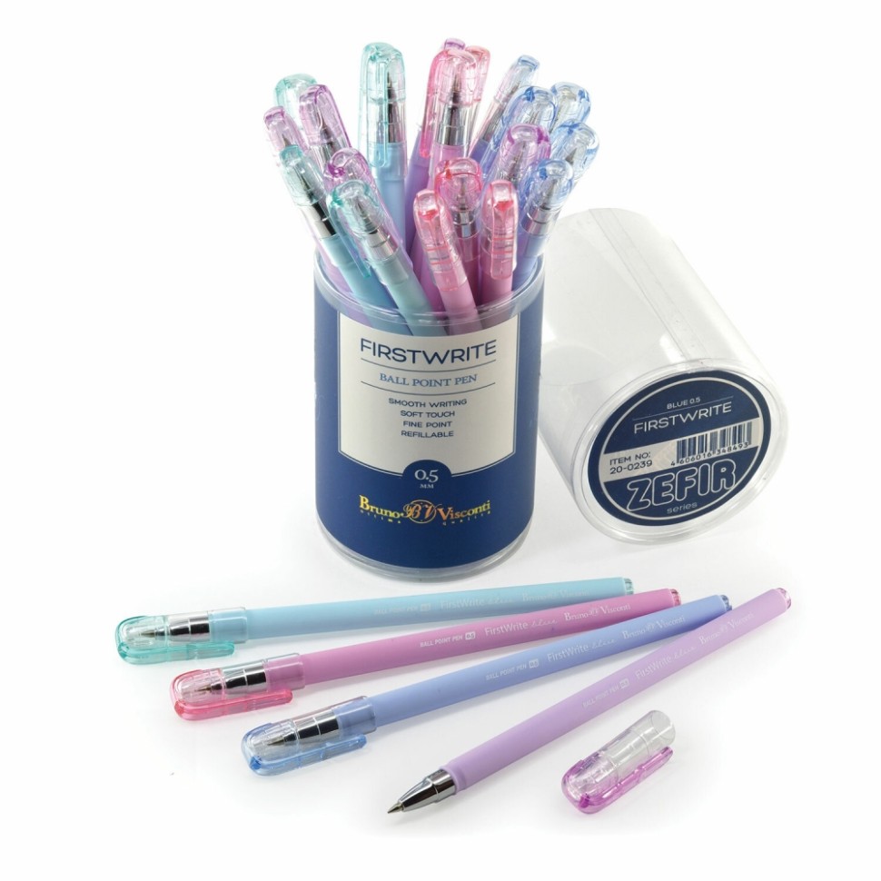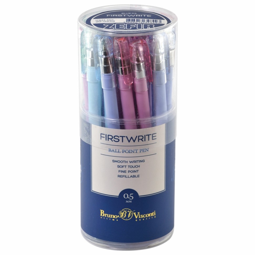 Нарушена упаковка! <269163> Ручка шариковая BRUNO VISCONTI "FirstWrite", СИНЯЯ, "Zefir", ассорти, узел 0,5 мм, линия письма 0,3 мм, 20-0239 (143590)