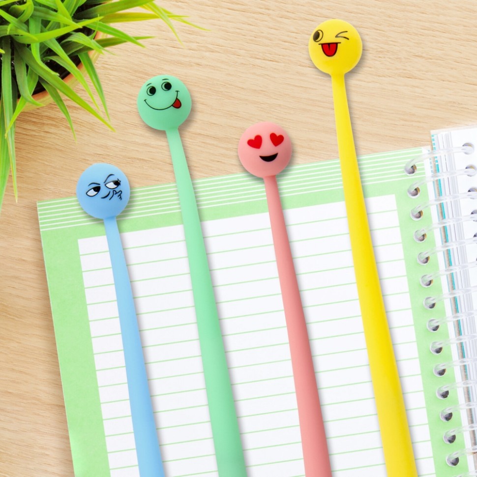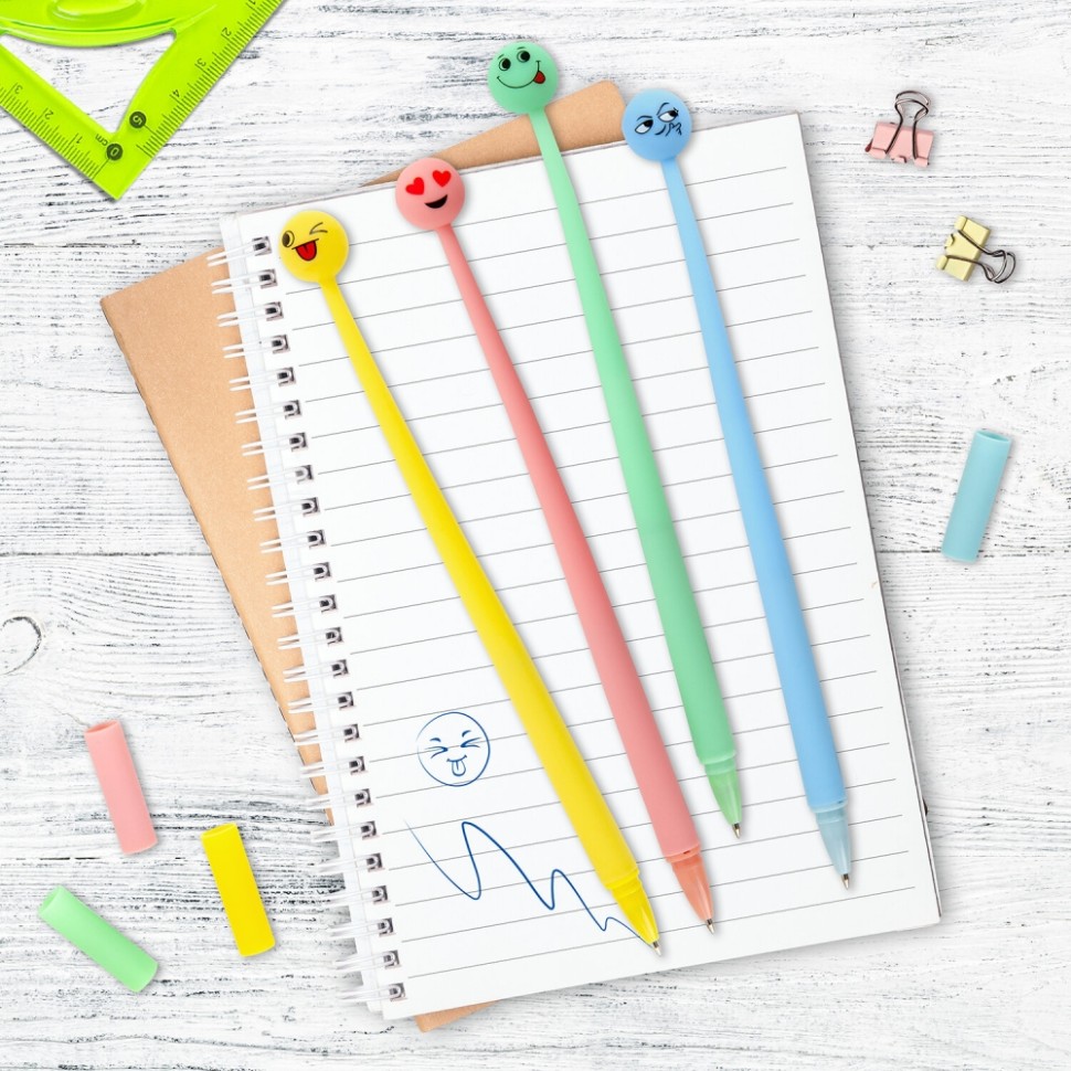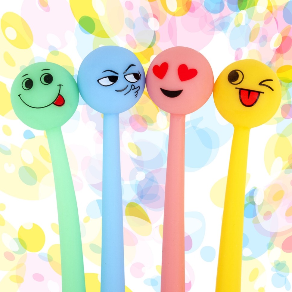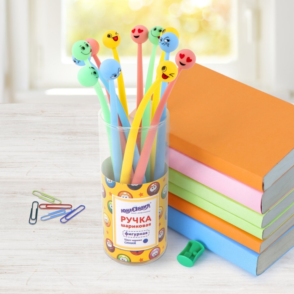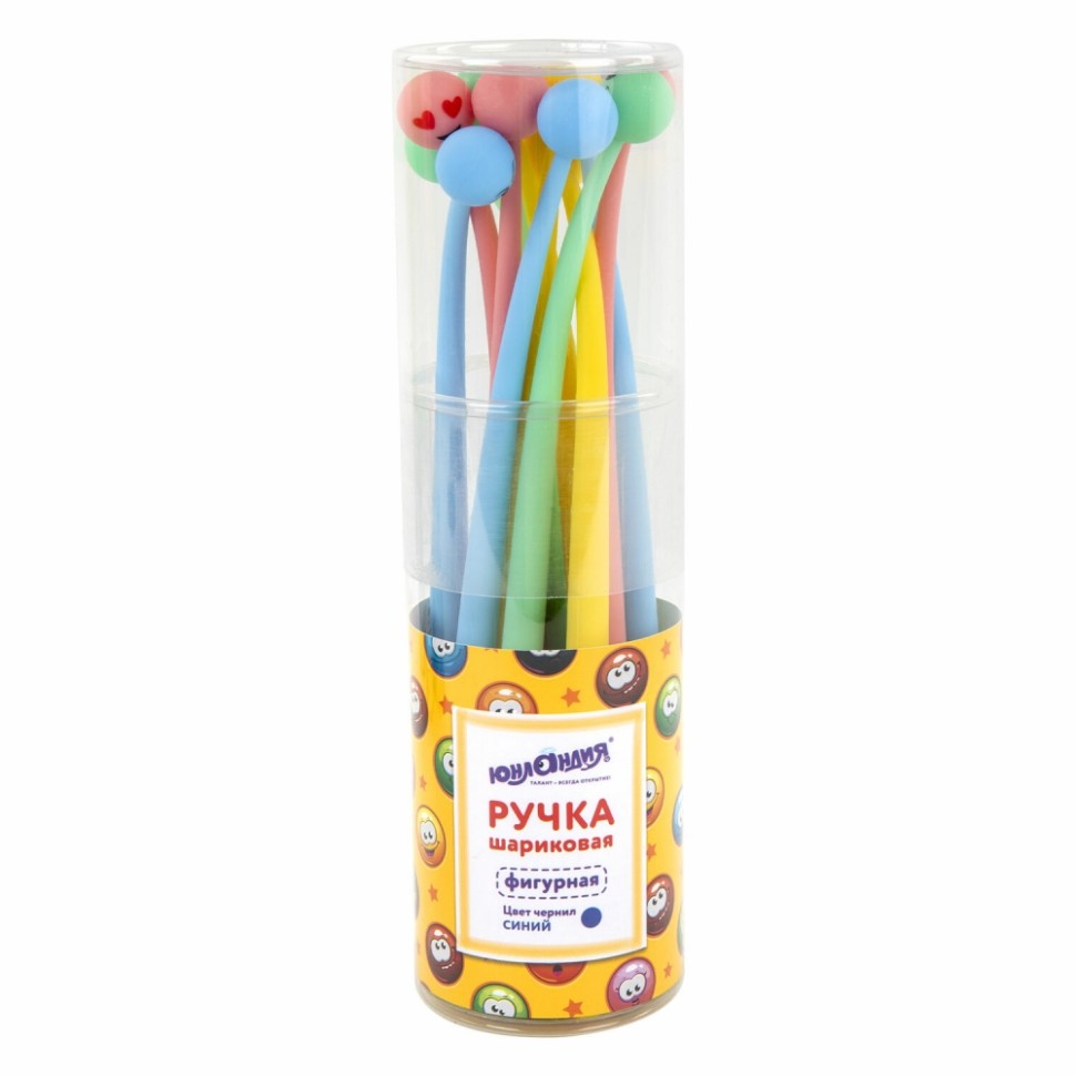 Нарушена упаковка! <370633> Ручка фигурная шариковая ЮНЛАНДИЯ "Смайлик", силиконовый корпус, ассорти, СИНЯЯ, пишущий узел 0,7 мм, 143793