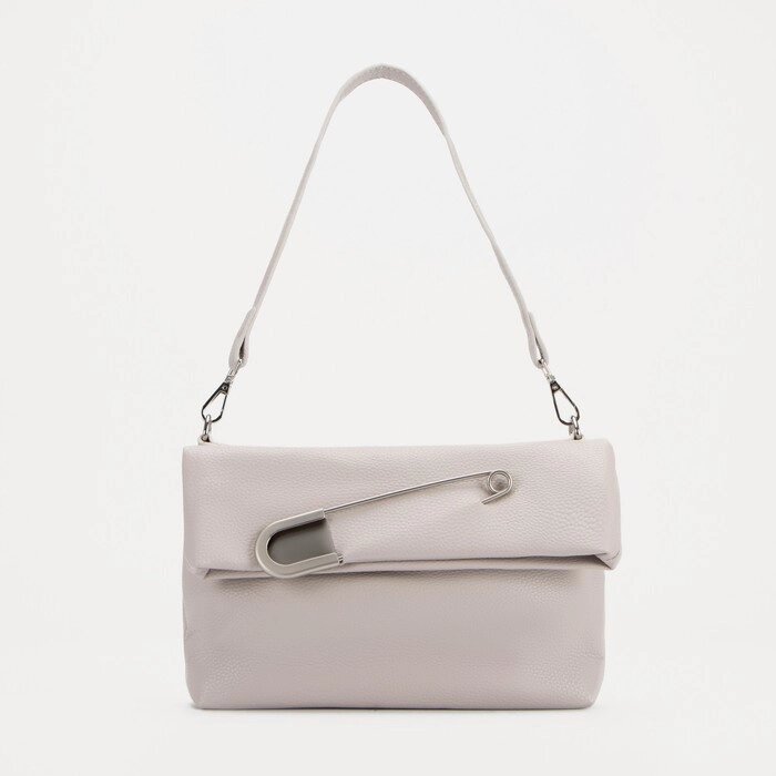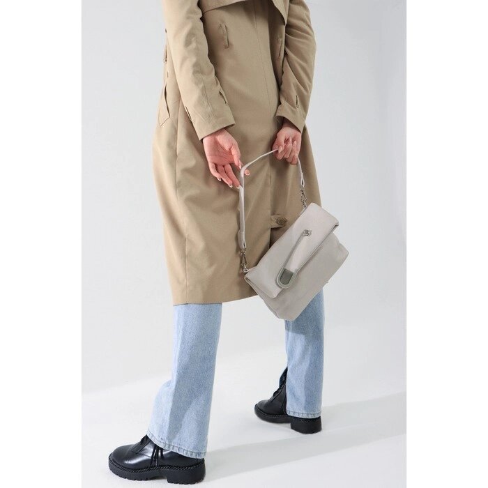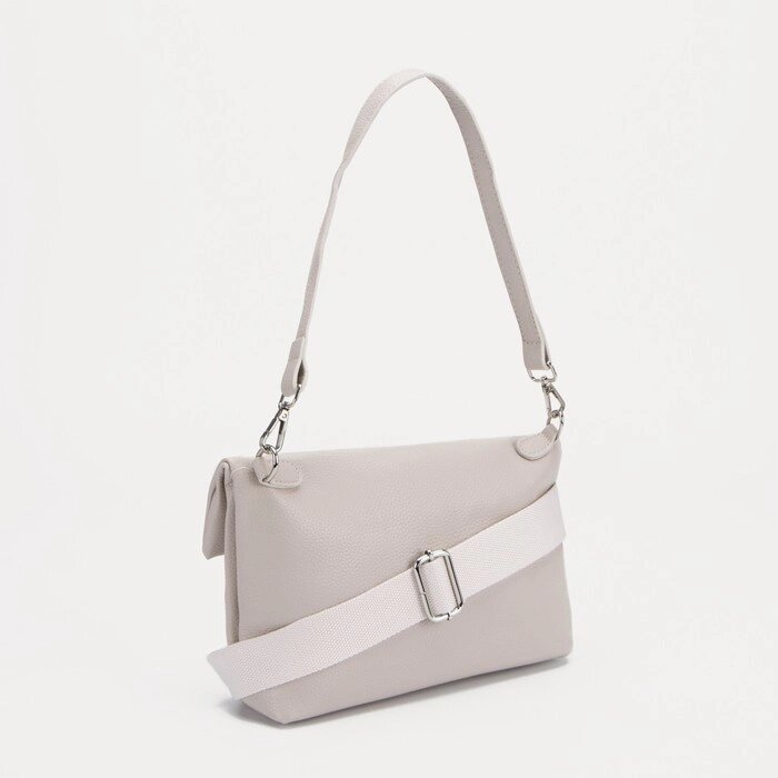 Клатч, отдел на магнитной кнопке, длинный ремень, цвет бежевый