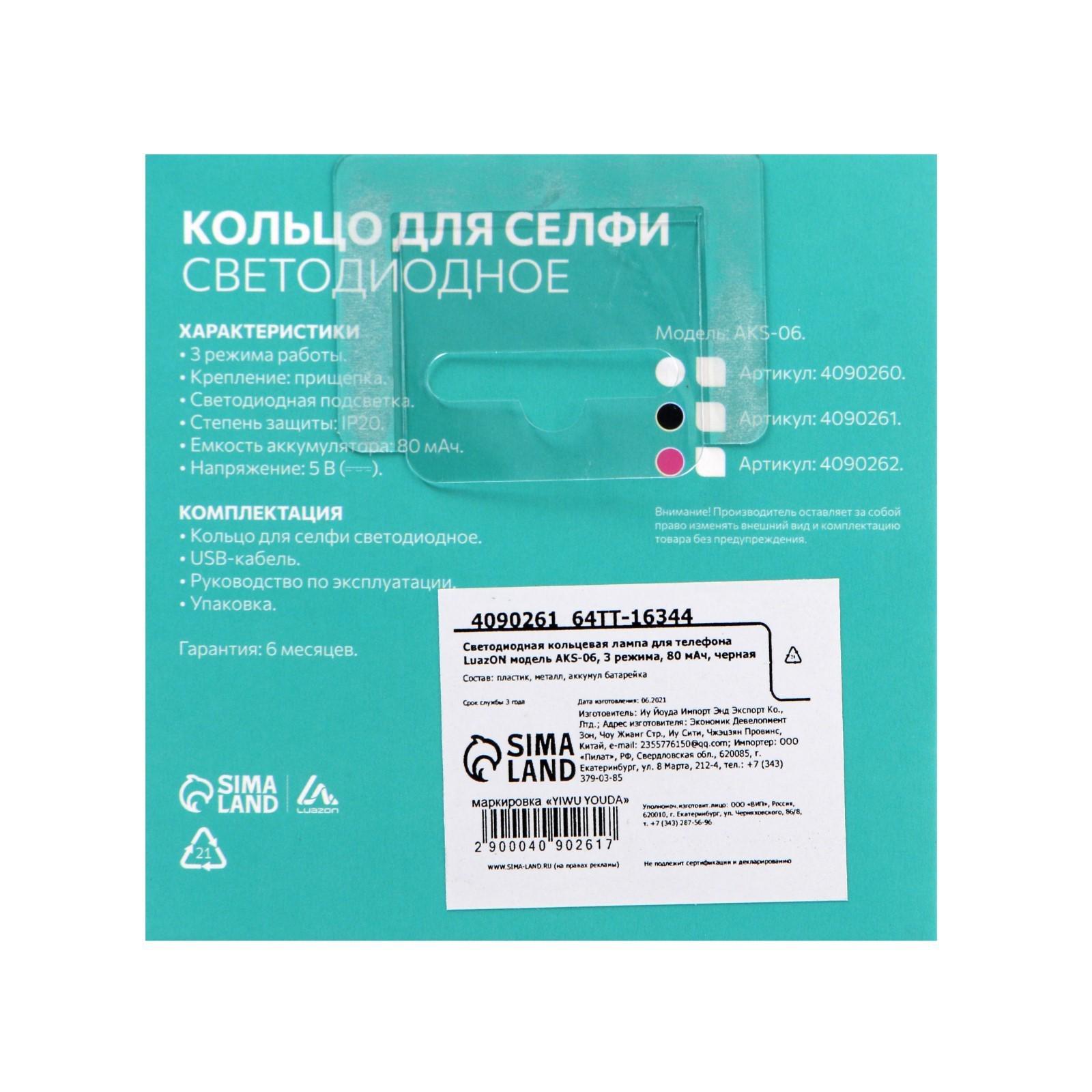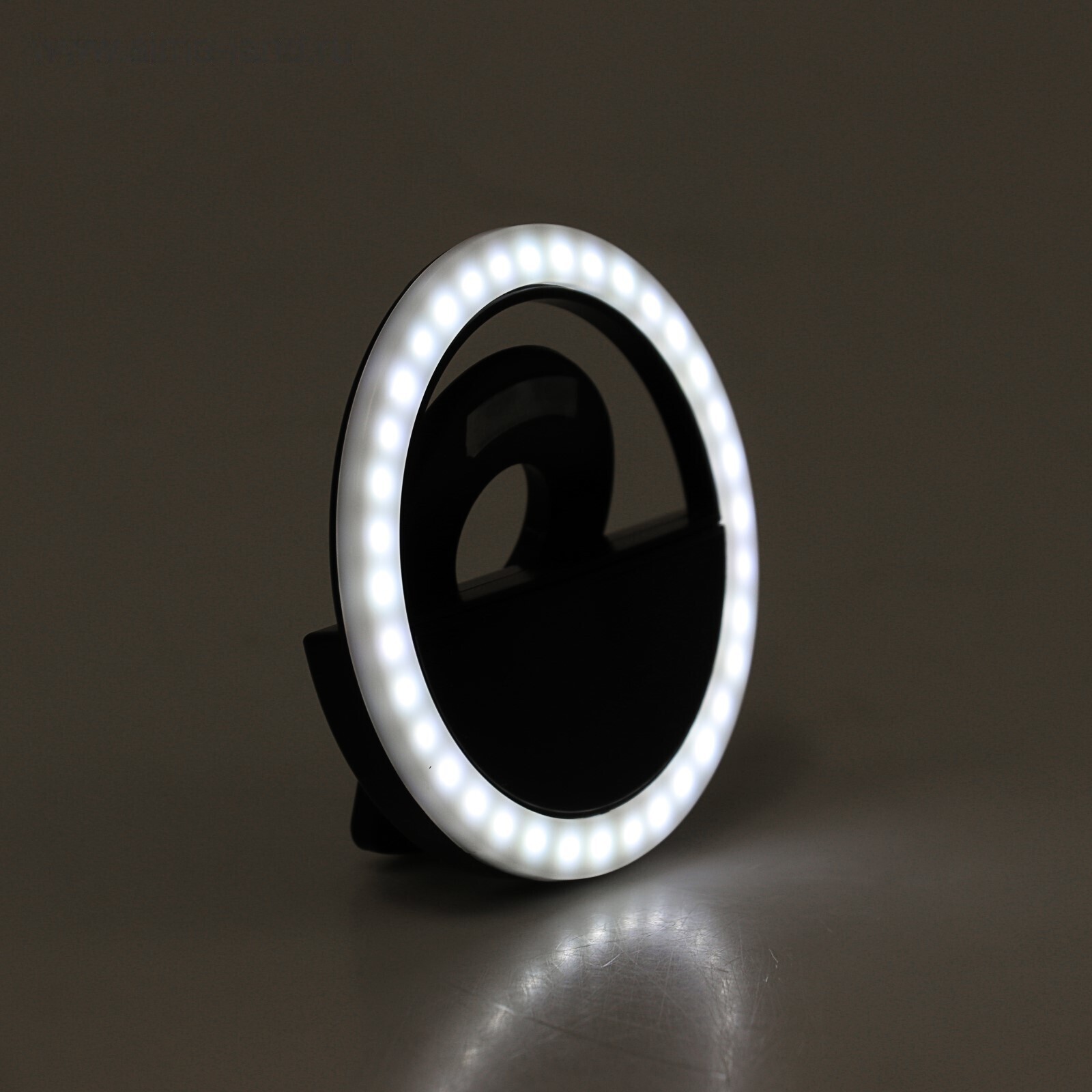 УЦЕНКА Светодиодное селфи кольцо на телефон, AKS-05, три режима, аккумулятор 80 мАч, черно-белое 4