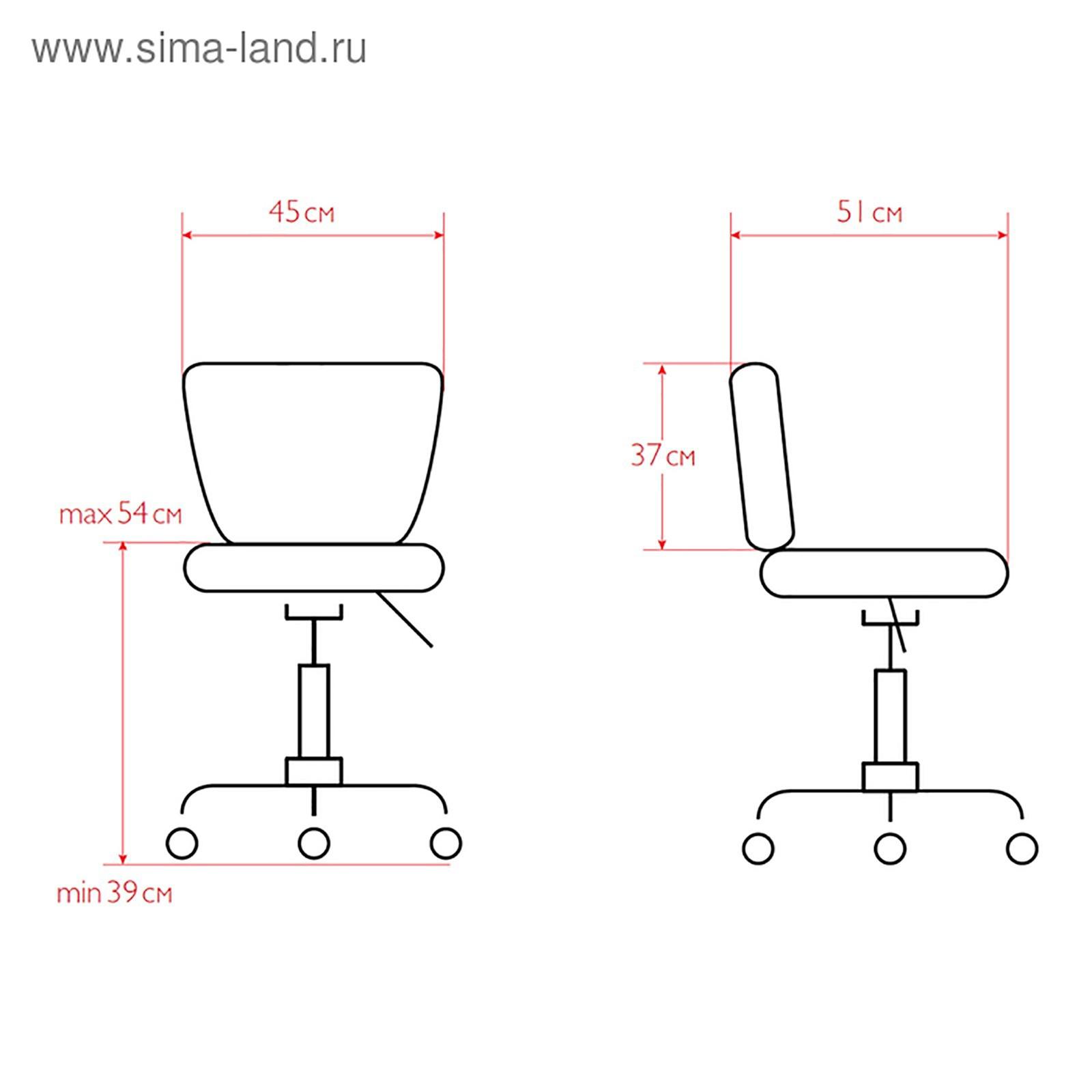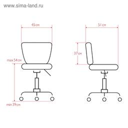 Стул оригинального дизайна с пневматической регулировкой высоты. С удобным мягким сиденьем. Колесики вращаются на 360°.