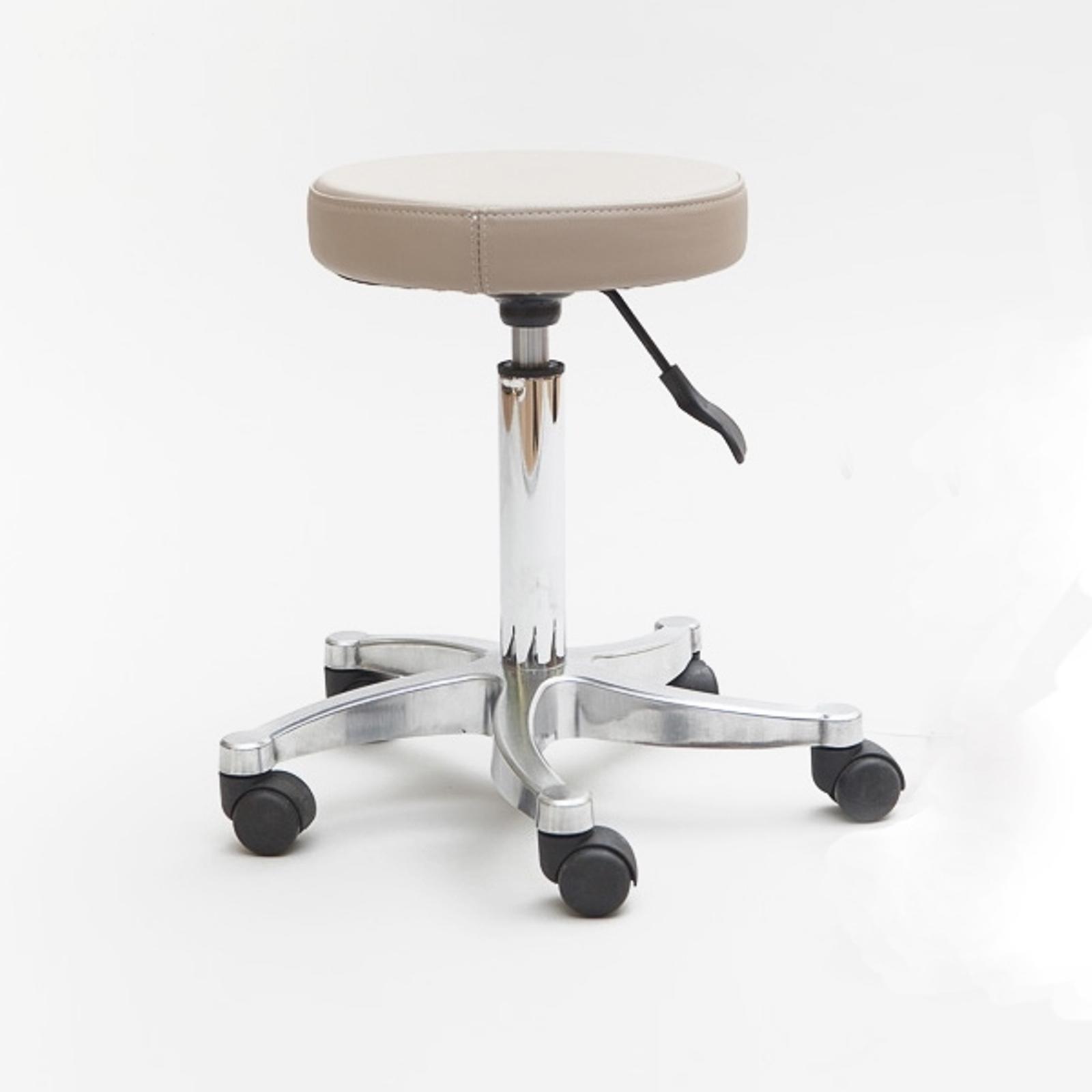 Стул мастера SD-9009E изготовлен из матовой хромированной стали и прочного пластика. Сиденье обтянуто экокожей – прочным материалом, устойчивым к физическому и химическому воздействию. Свободно вращающие колеса позволяют передвигаться, не вставая с кресла.