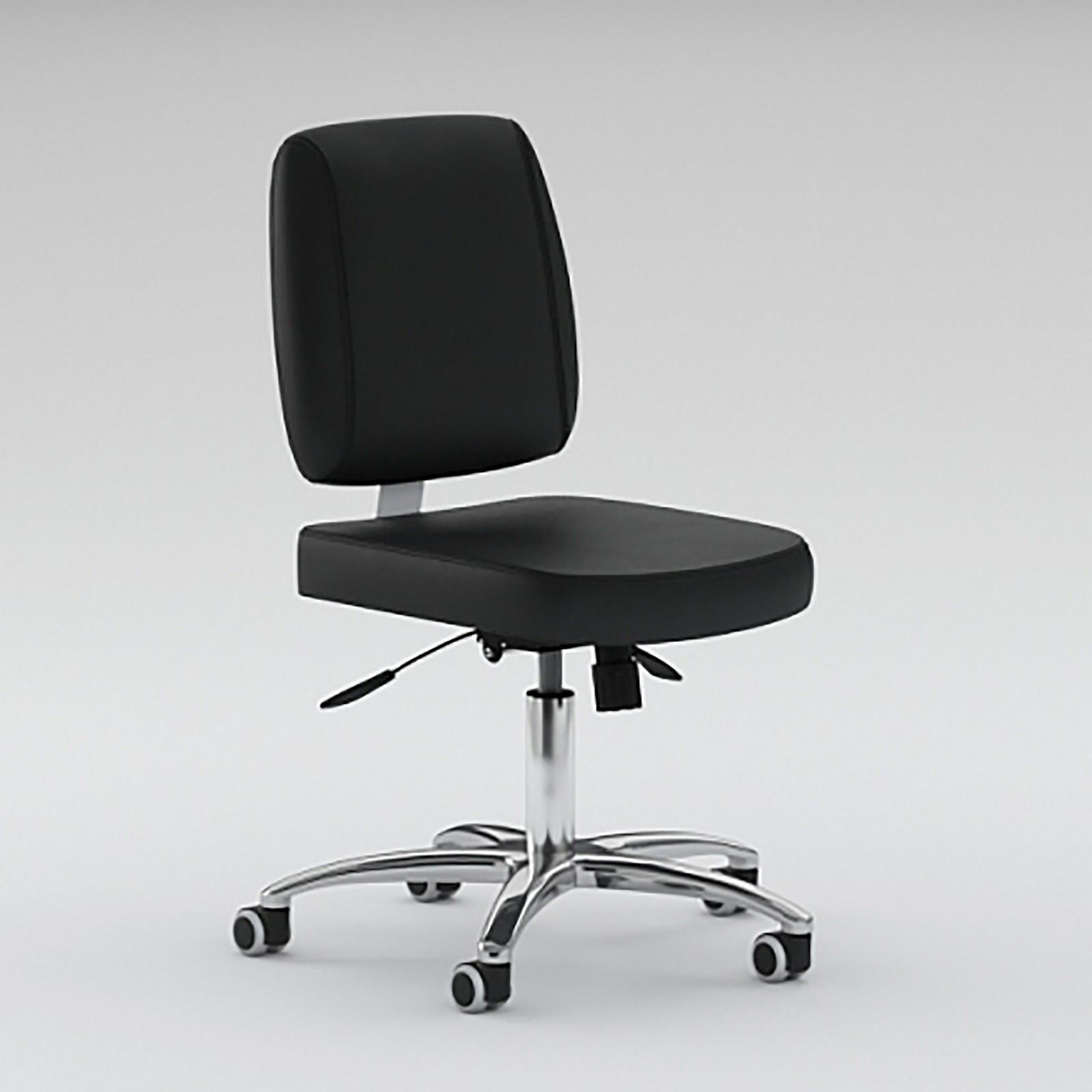 Стул на пластиковом пятилучье без спинки с пневматической регулировкой высоты. С удобным мягким сиденьем из эко кожи. Колесики вращаются на 360°.